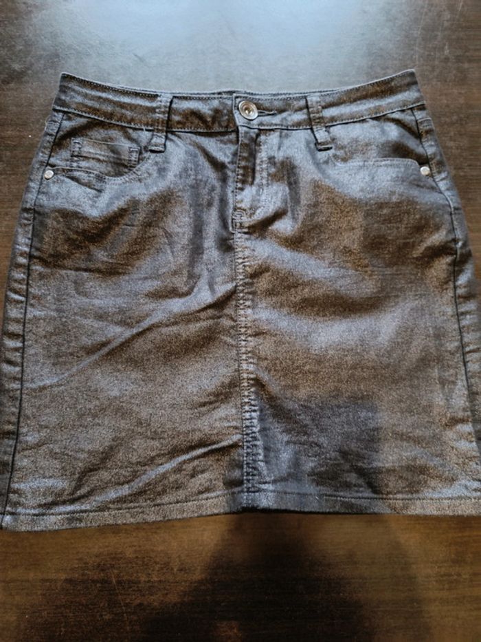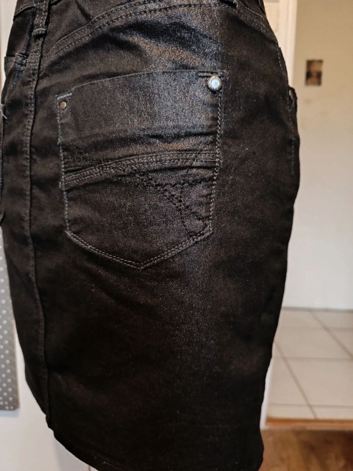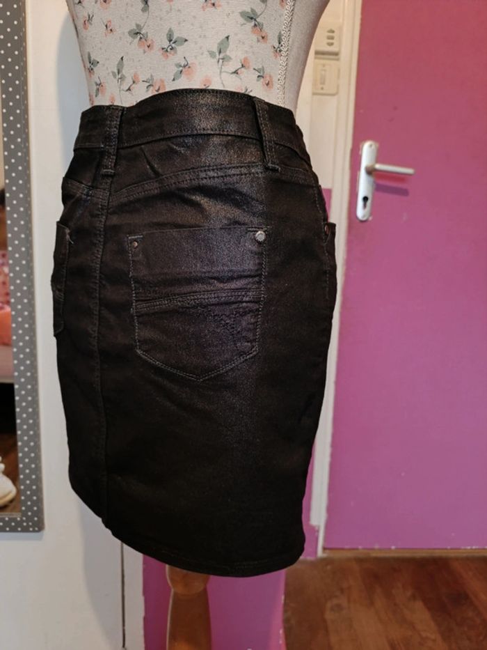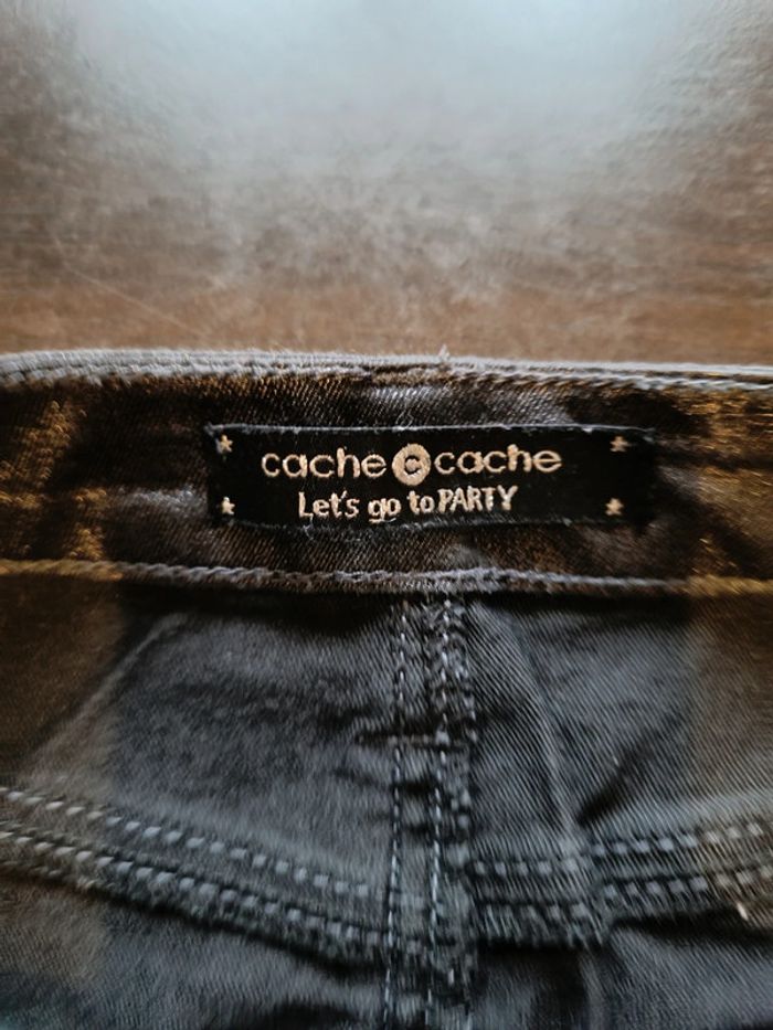 Jupe CACHE CACHE Noire légèrement pailletée Fermée par zip & bouton Poches 67% Coton, 31% Polyester & 2% Elasthanne TAILLE 38 TRES BON ETAT Allez voir mes autres ventes!