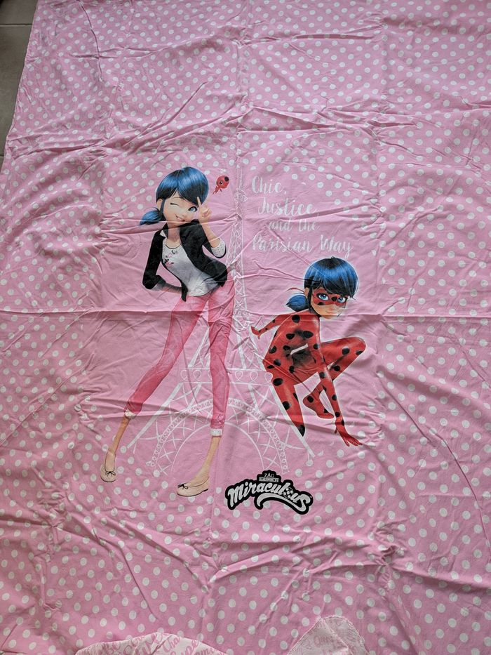 Housse de couette enfant lit 1 place Miraculous ladybug Dimensions 140 par 200 En très bon état, à noter toutefois une trace de feutre sur la housse de l oreiller