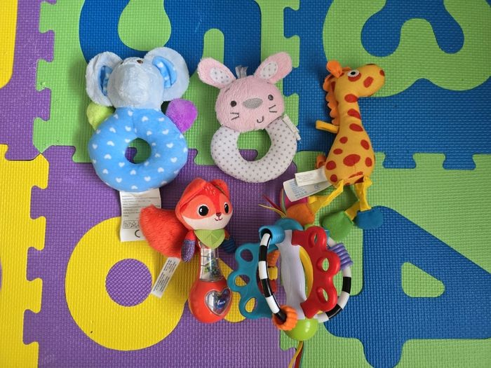Lot de 5 hochets. Vtech, et autres. En bon état.