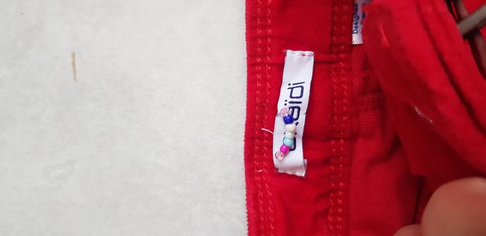 Très bon état avec un petit lien en perles sur l'étiquette pour reconnaître facilement ses vêtements cf photo.