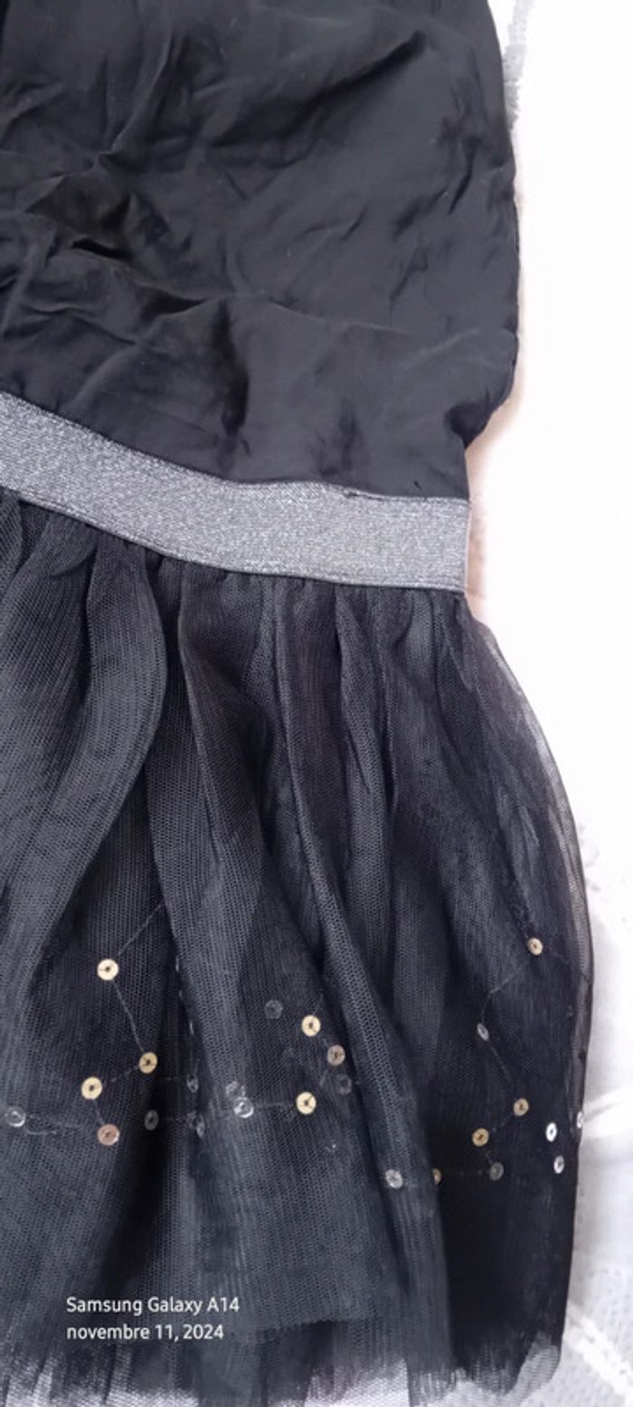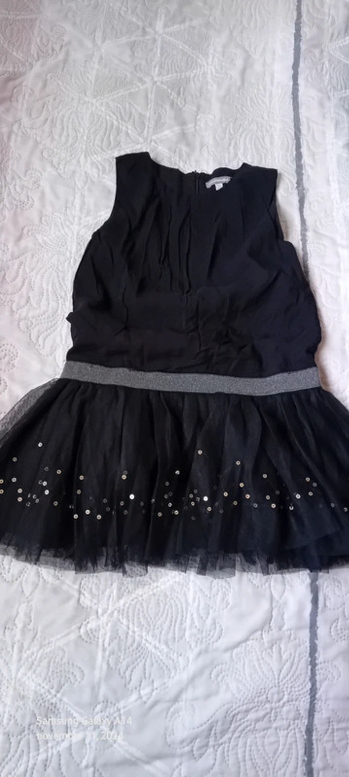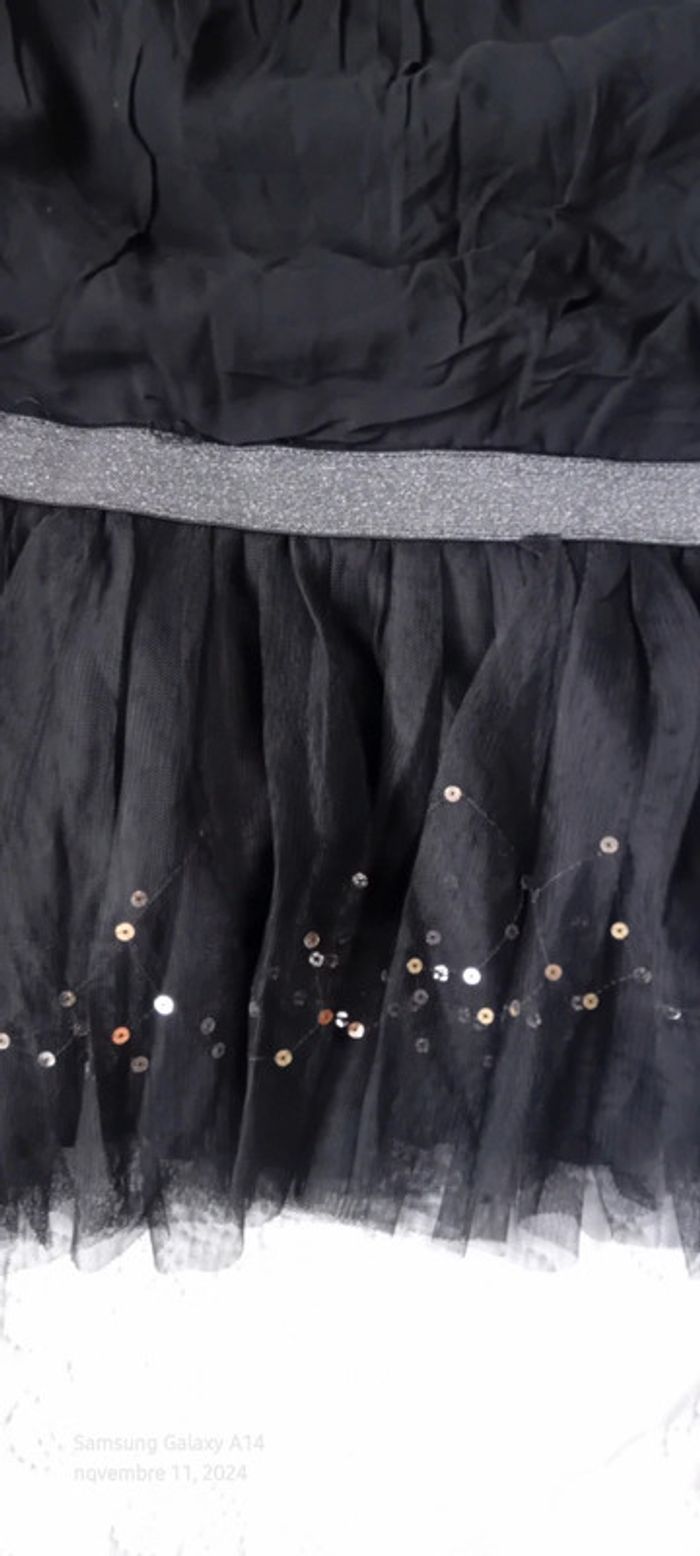 Robe sans manches haut en coton léger bas en viscose et polyester jupon en tulle avec sequins dorés bande argentée avec paillettes idéale pour une cérémonie ou les fêtes de fin d'année longueur 70 cm largeur aisselles à aisselles 35 cm jamais portée état neuf #midole #midoleenfant #midolefille #midolefille10ans #midolefetes #midolenoël #fille10ans #robefille10ans #robeceremoniefille #robedefêtefille10ans #neuf #vertbaudet #fille10ans