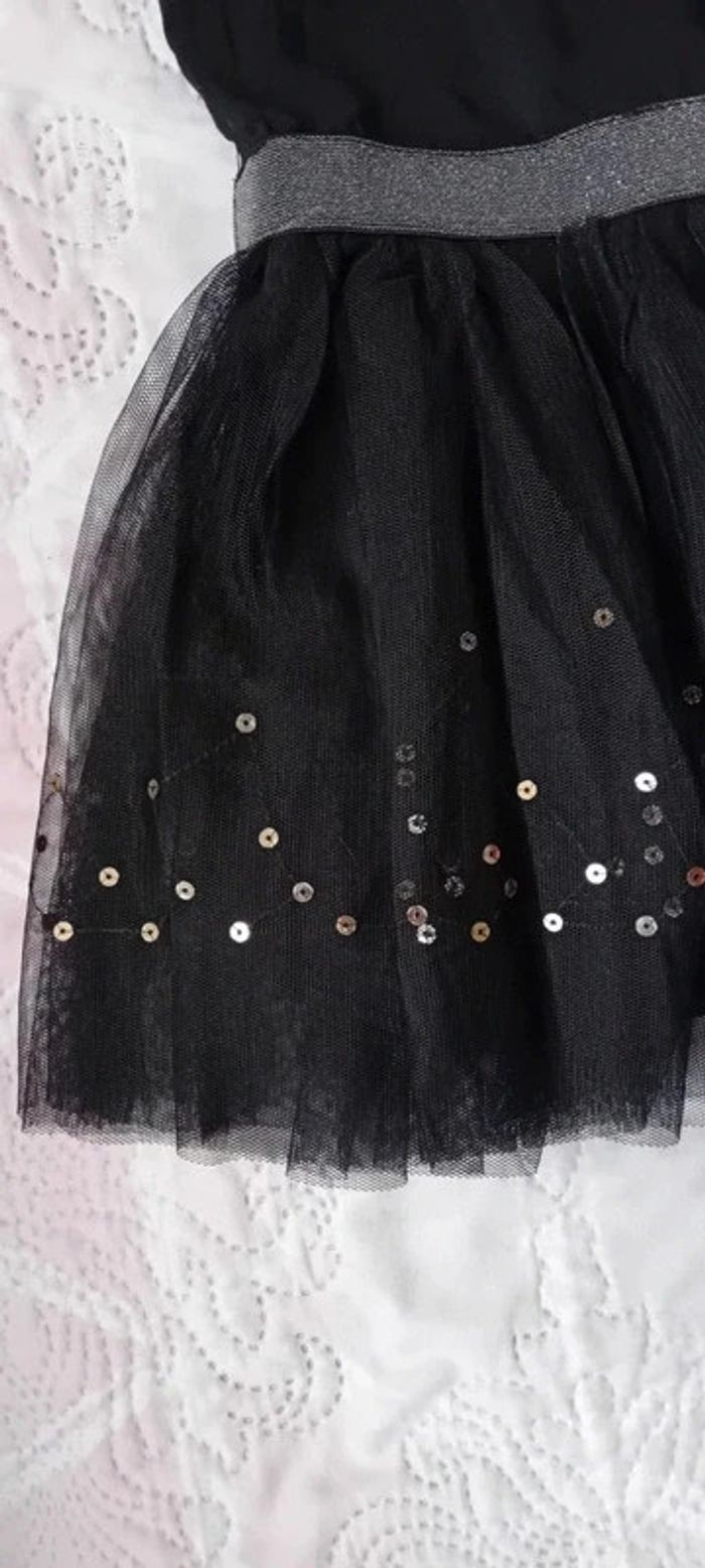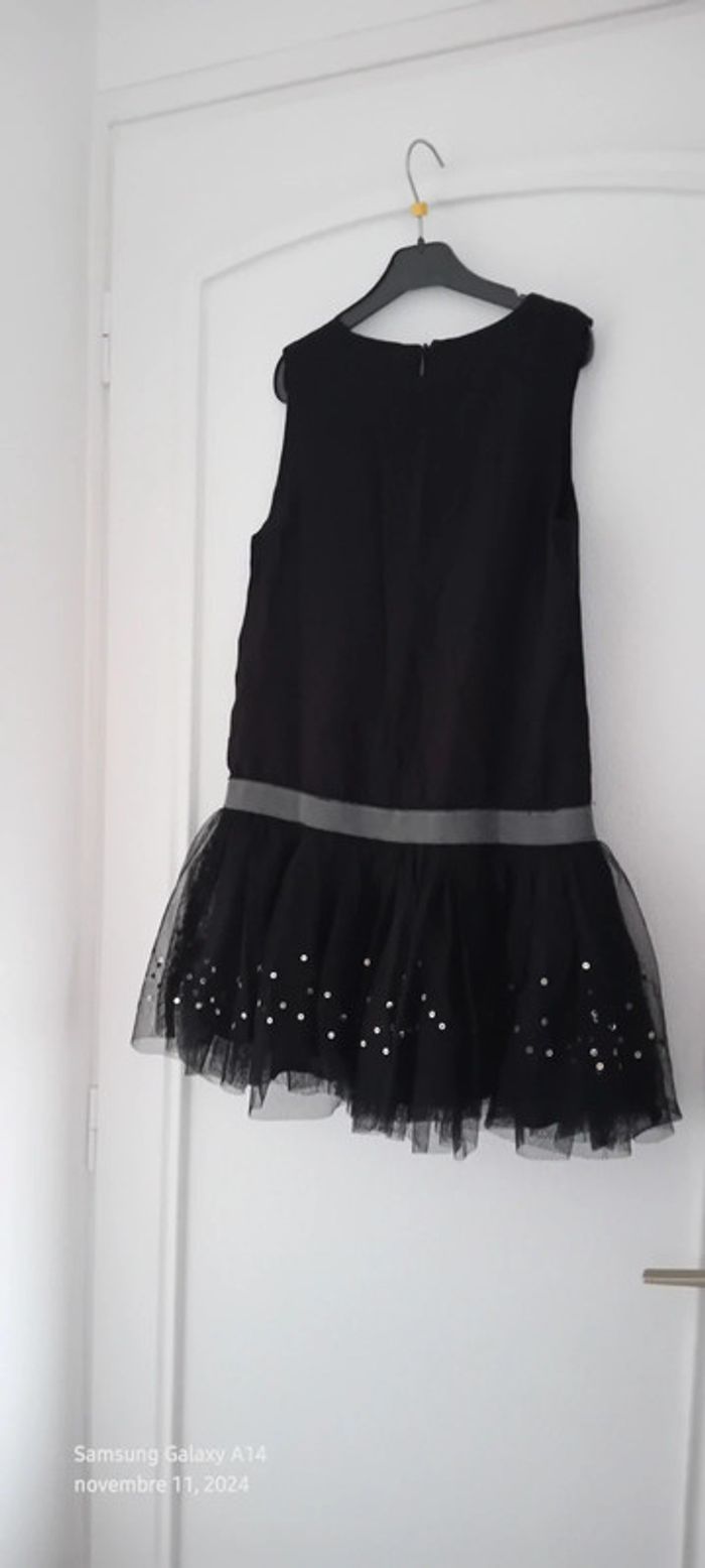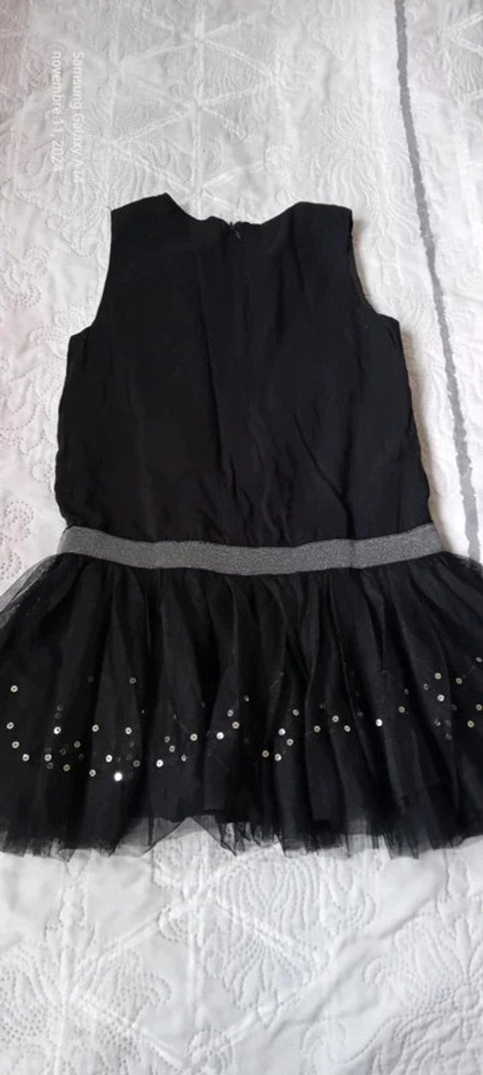 Robe sans manches haut en coton léger bas en viscose et polyester jupon en tulle avec sequins dorés bande argentée avec paillettes idéale pour une cérémonie ou les fêtes de fin d'année longueur 70 cm largeur aisselles à aisselles 35 cm jamais portée état neuf #midole #midoleenfant #midolefille #midolefille10ans #midolefetes #midolenoël #fille10ans #robefille10ans #robeceremoniefille #robedefêtefille10ans #neuf #vertbaudet #fille10ans