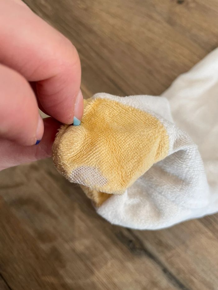 Jaune usé sur le bout des pieds #mel2710garcon6mois