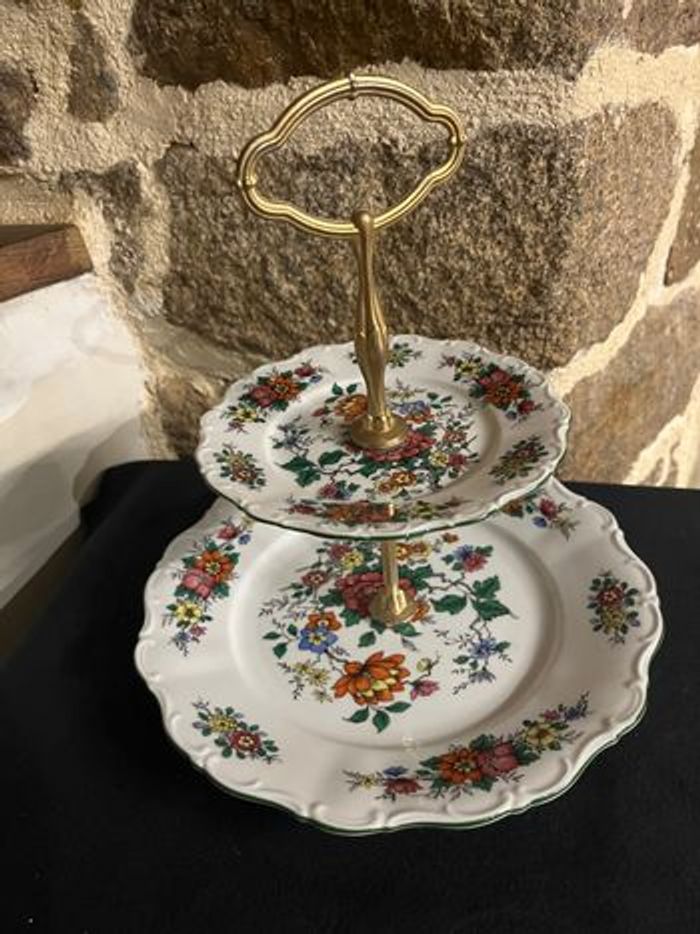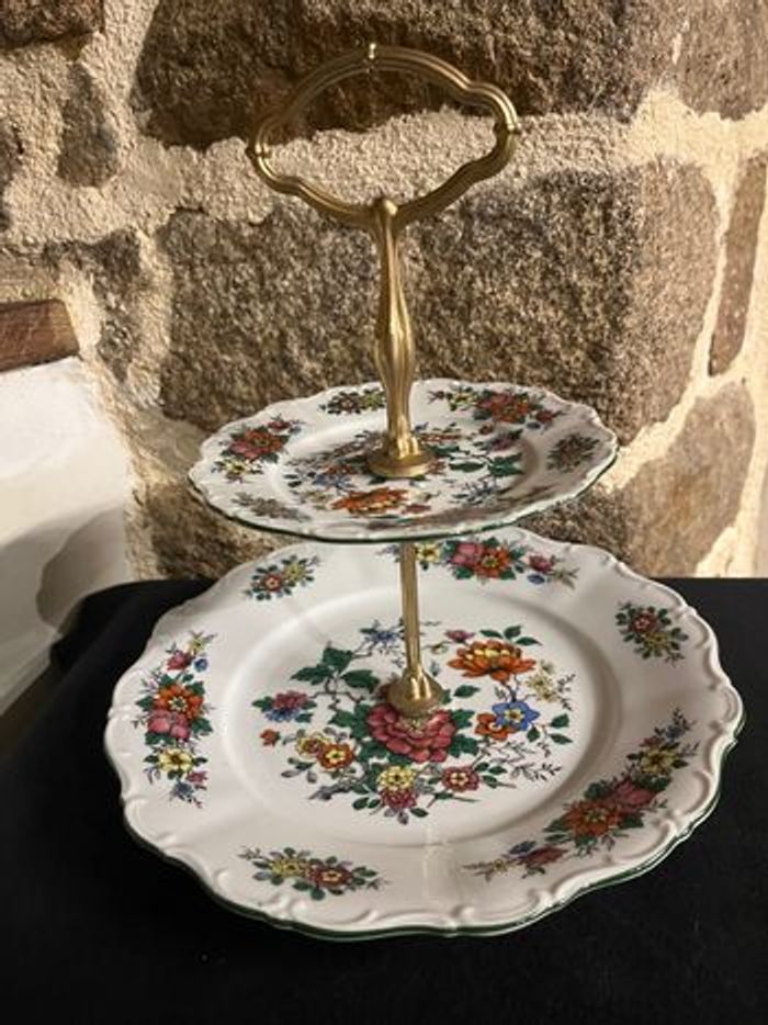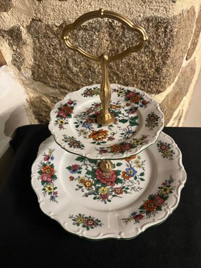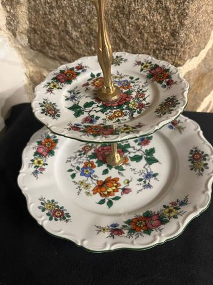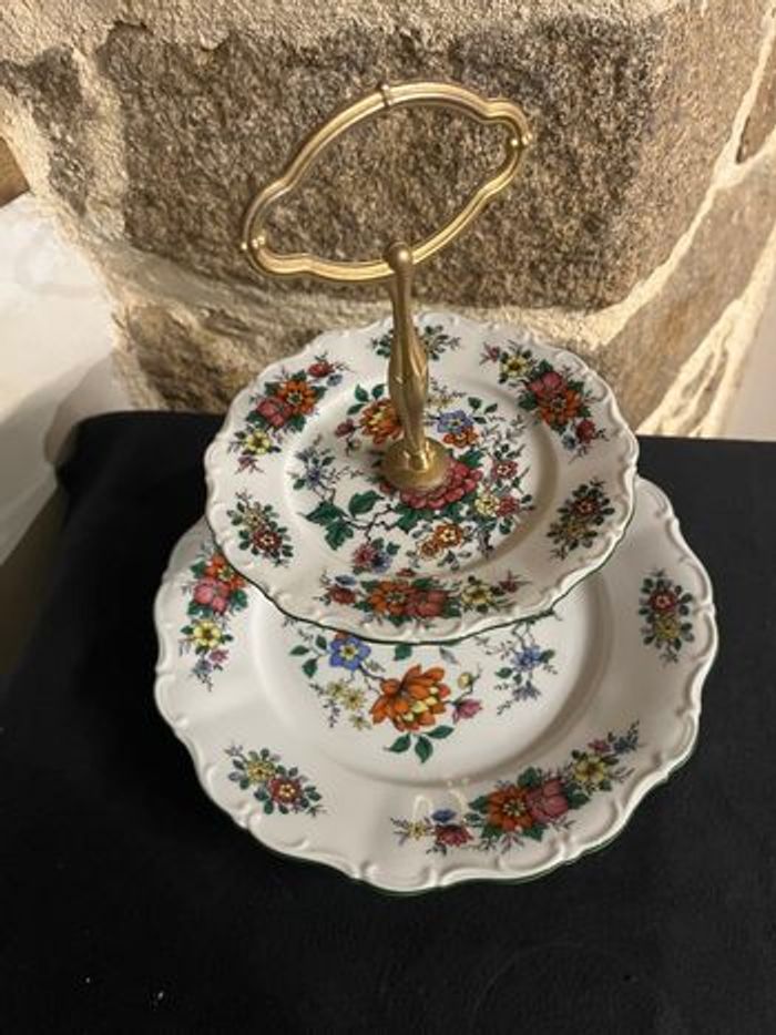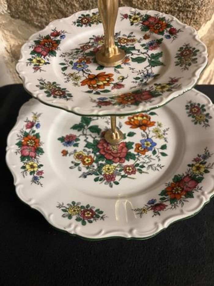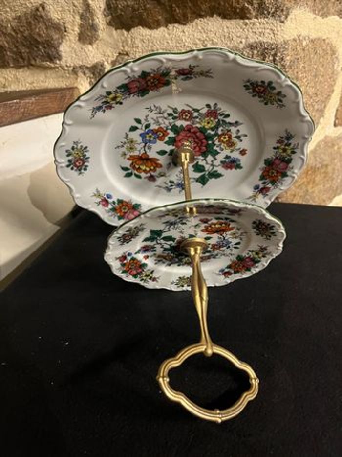 Superbe serviteur, plateau de service Seltmann Weiden Bavaria Vintage Hauteur environ 24 cm Diamètre des plateaux 23,5 cm et 14,5 cm 303