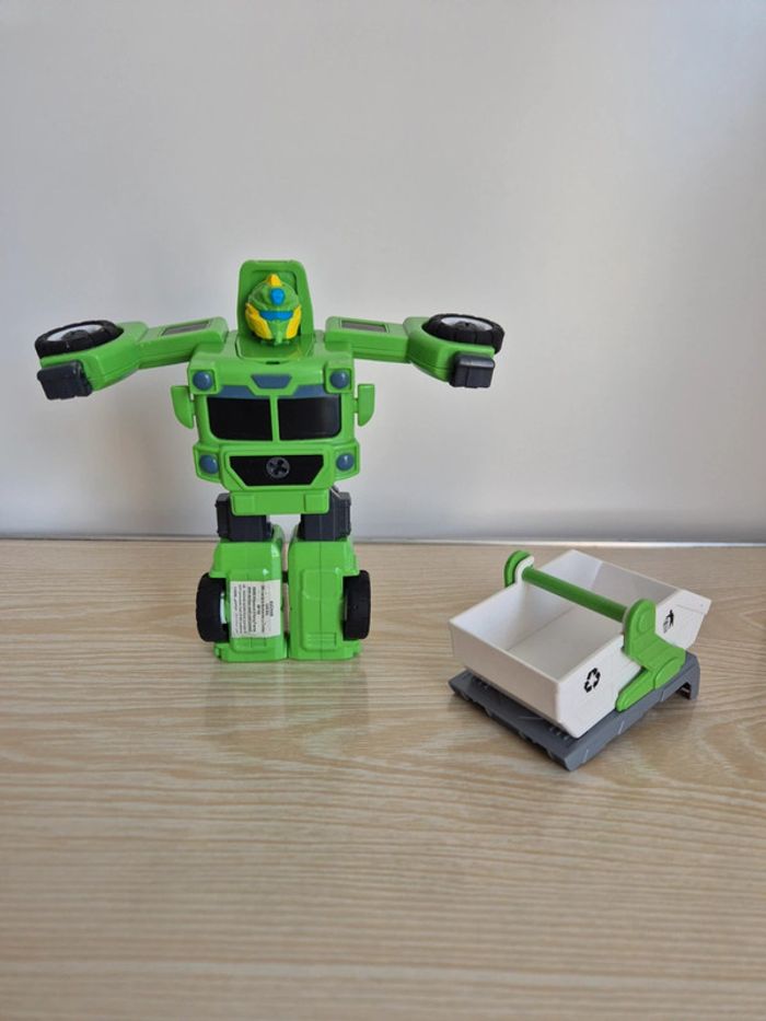 Camion poubelles transformers Le camion: 8cm de haut 14 cm de long Une fois transformé: 16 cm de haut Auchan #damilly86jouets
