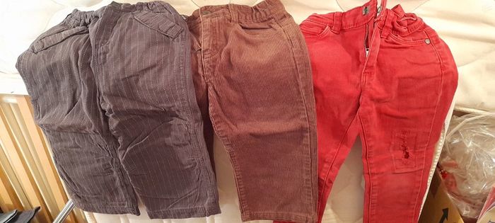 Lot de 6 pantalons garçon en très bon état juste légère trace sur le jean bleu. Plusieurs marques 2 ans Moins d 1 euro pièce