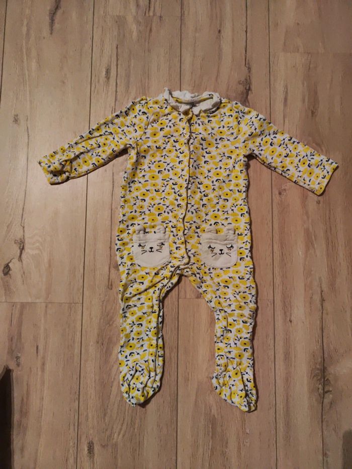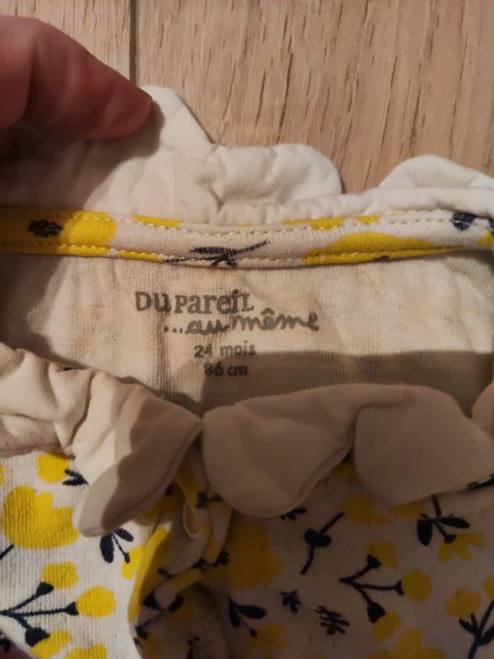 Jolie pyjama léger fleuri avec jolie col et petite poche chat, pression devant. Taille 24 mois marque Du Pareil au Même