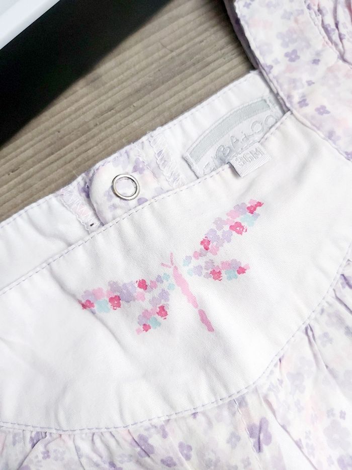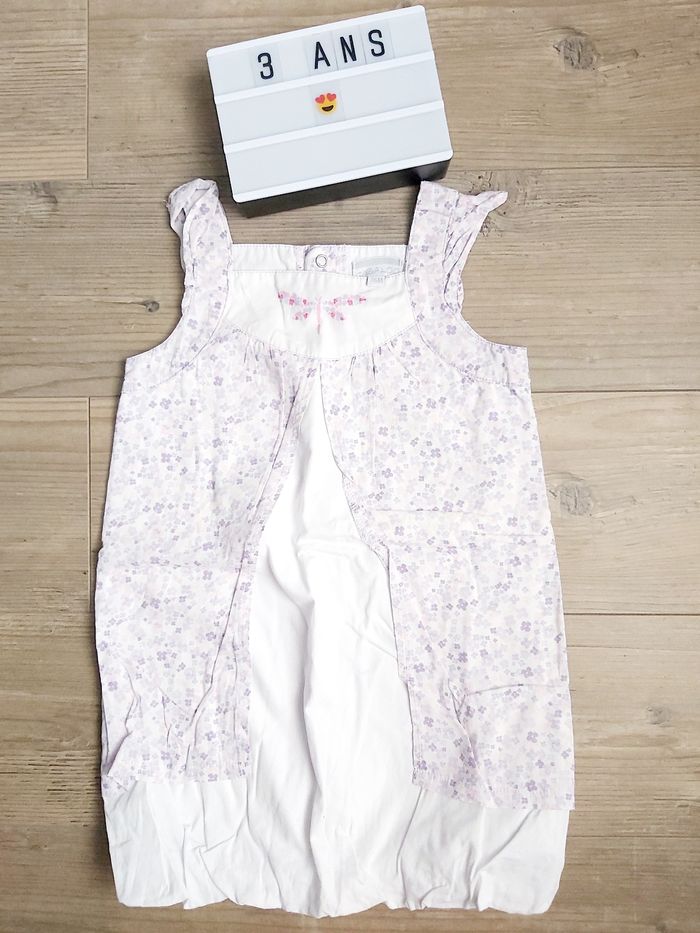 robe kimbaloo 36 mois, blanche et lilas, fermeture pressions dans le dos