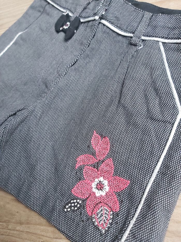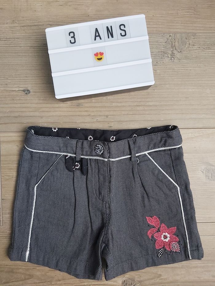 short orchestra 3 ans, noir chiné avec broderie, taille ajustable et fermeture pression. tbe
