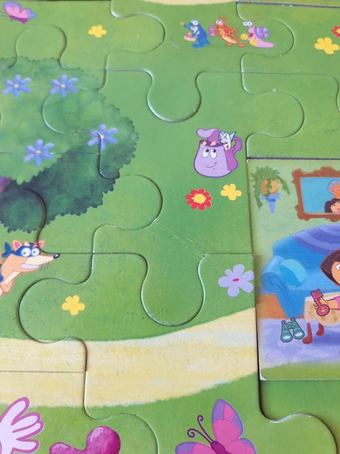 Puzzle de 25 pièces Dora l'exploratrice Puzzle aventure Le puzzle est complet En bon à très bon état. Voir photos. Une pièce avec trace pliure. Le puzzle a déjà été fait par un enfant mais reste en bon à très bon état. Vends puzzle seul de 25 pièces pour enfants de 2 ou 3 ans à 4 ou 5 ans environ. Explore le monde de Dora et visite les différentes maisons. Que trouveras-tu à l'intérieur ? Retourne les pièces et tu le découvriras Peux tu retrouver les maracas, les jumelles ou le cornet de glace ? Echange toutes les pièces et crée une nouvelle aventure, tu pourras en inventer à linfini ! Ce super adventure puzzle aide les petits à coordonner leurs mouvements et développe leur créativité. #angel_enfant_jeu_éducatif #angel_enfant_jeu_puzzle