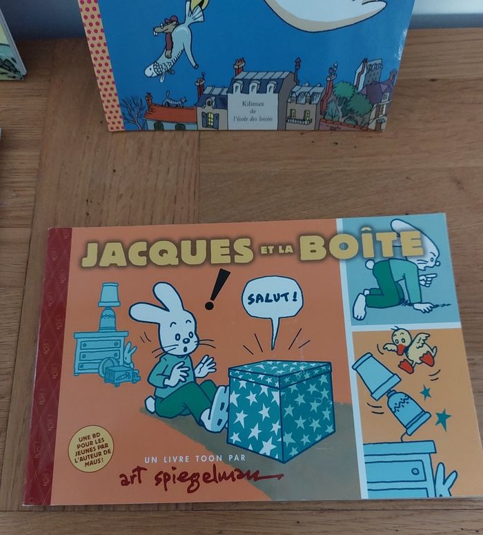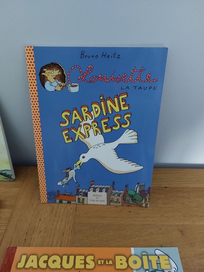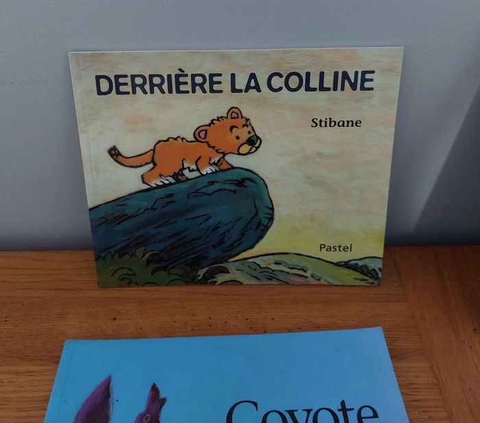 Lot de 4 livres - Derrière la colline - Jacques et la Boîte - Sardine express - Coyote mauve l'école des loisirs Très bon état