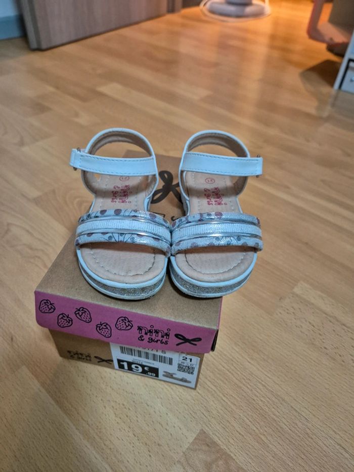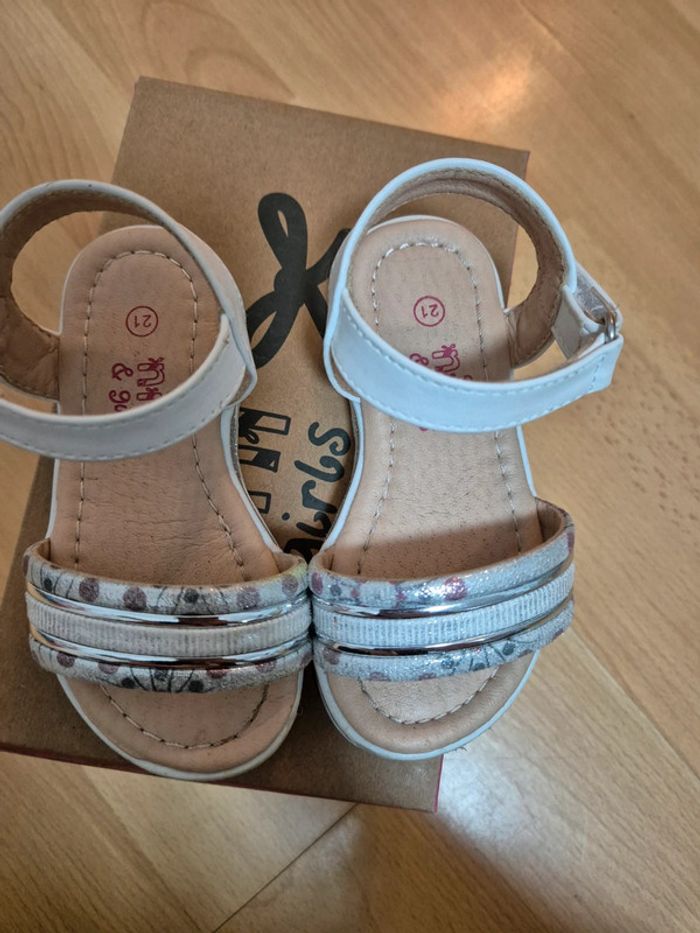 Claquettes blanches et argentées Taille 21, très peu portées Chaussea
