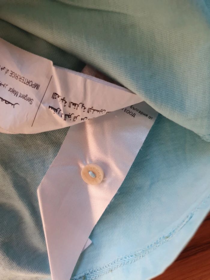 joli coloris un petit bouton est parti. il y a un bouton de rechange à recoudre. petit accroc
