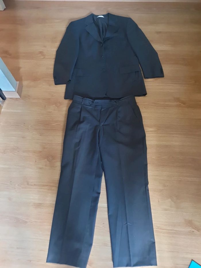 pantalon t42 hauteur du bas à la taille 97.5 cm . du bas à l entrejambe 71 cm. De l entrejambe à la taille 26 cm. veste taille m manche longueur 60 cm de l épaule au poignet. joli costume en parfait état