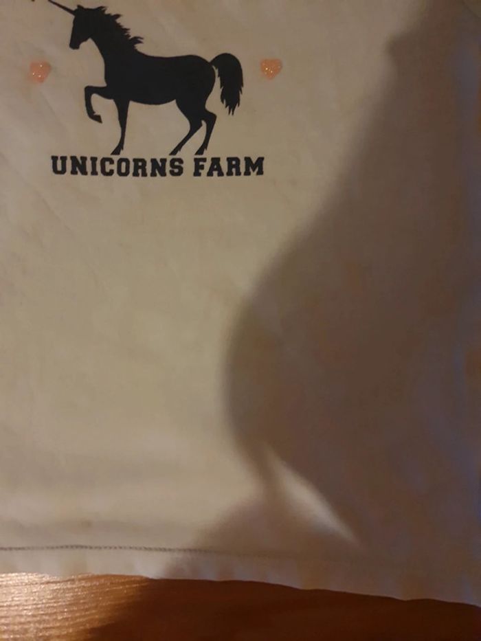 theme cheval unicorm farm bleu ciel. manches courtes tâche sur le devant