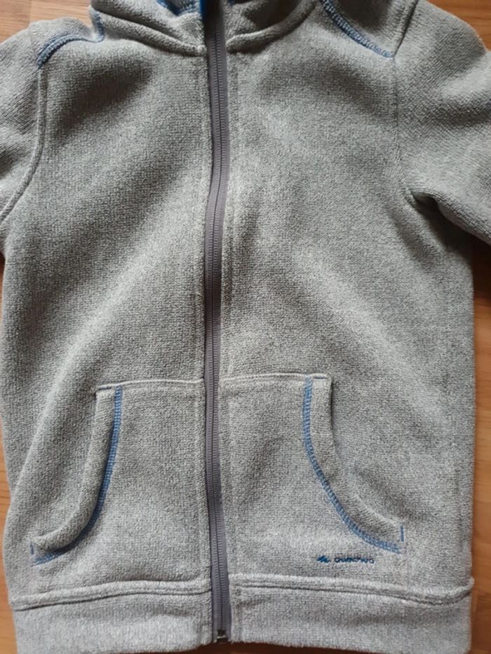 veste gilet gris de marque décathlon sport doublée polaire petite tâche grise sur mmanche gauche que je n ai pas essayé de faire partir fermeture en bon etat