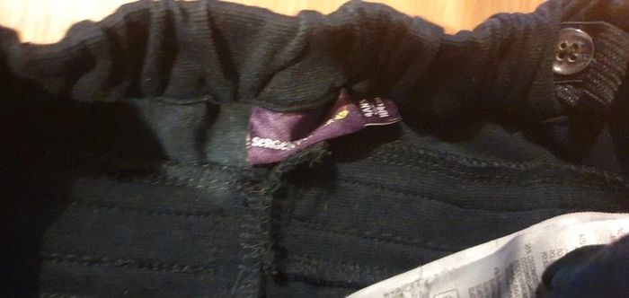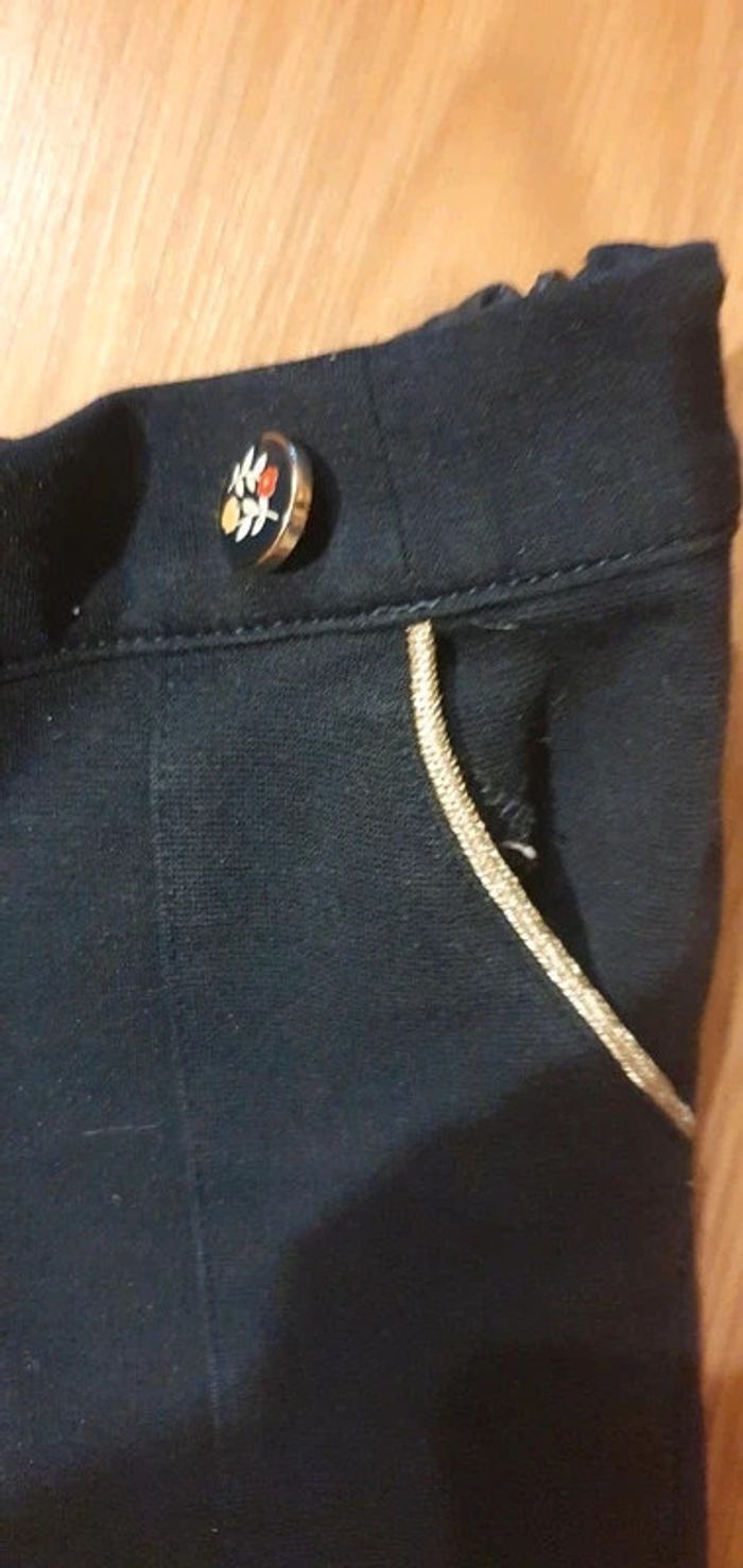 Marine avec un liseré or au niveau des poches. très beau pantalon en tbe habillé ajustable a la taille