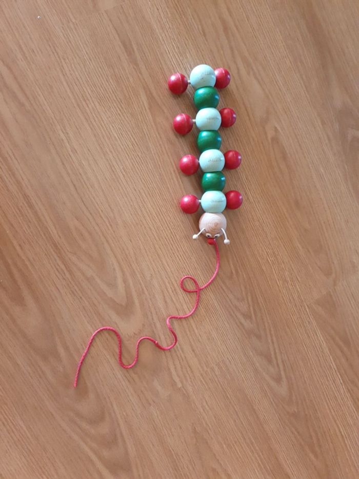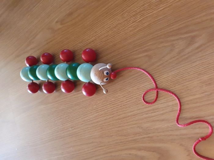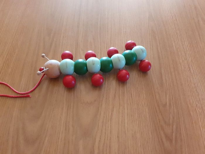 cette chenille se tire avec la corde et les pâtes bougent quand votre enfant tire sur la corde. sympathique jouet