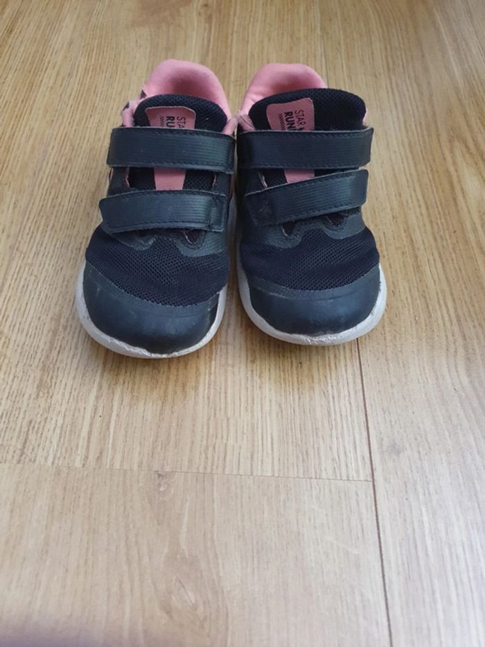 taille 25 ma fille a adoré les porter. ultra légère ceci a facilité les activités de marché et de sport. elles sont un peu usées sur un endroit voir photo. sinon bon état général pour le reste voir photos. très pratique pour des activités sportives. prix neuf 40 euros