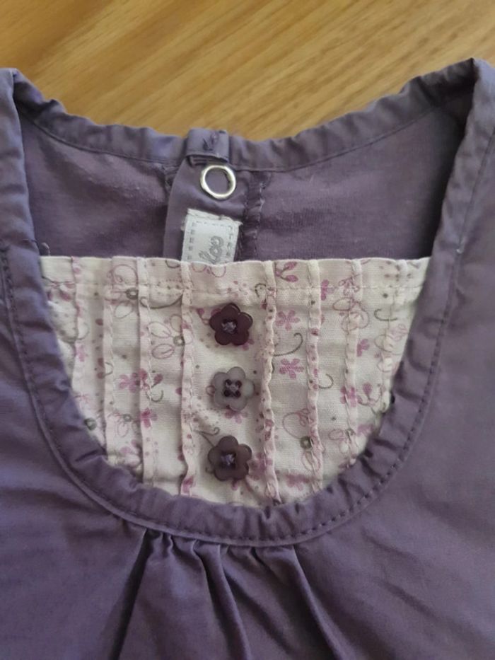 très jolie robe de couleur violet avec quelques motifs fleuris. n hesitez pas a constituer un lot. en automne avec un legging c est ravissant pour la crèche.