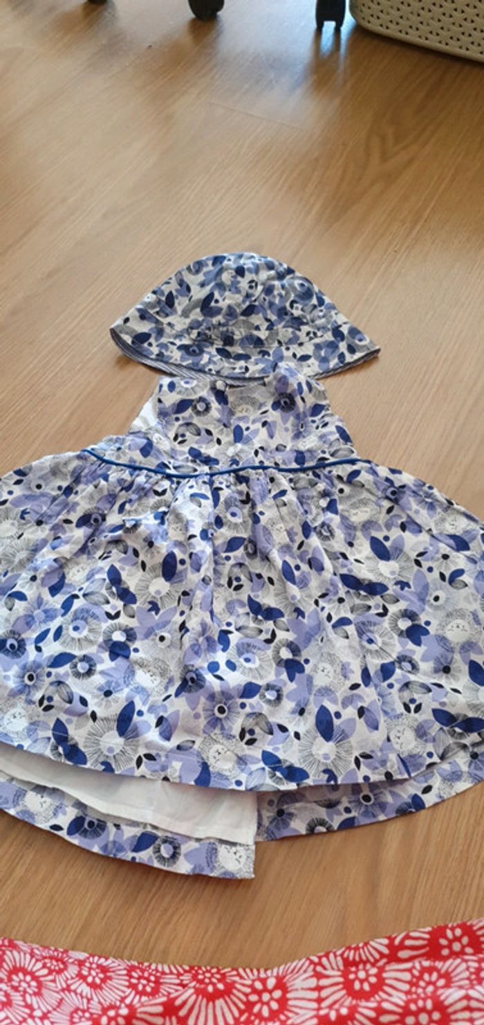 jolie robe dpam 9 mois tbe motif fleuri avec bonnet de 6 à 12 mois tbe très joli porte