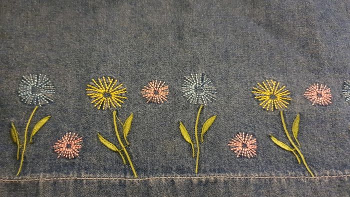 robe jean droite 23 mois avec jolis motifs brodés fleurs