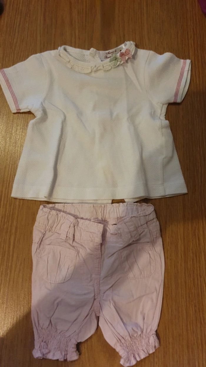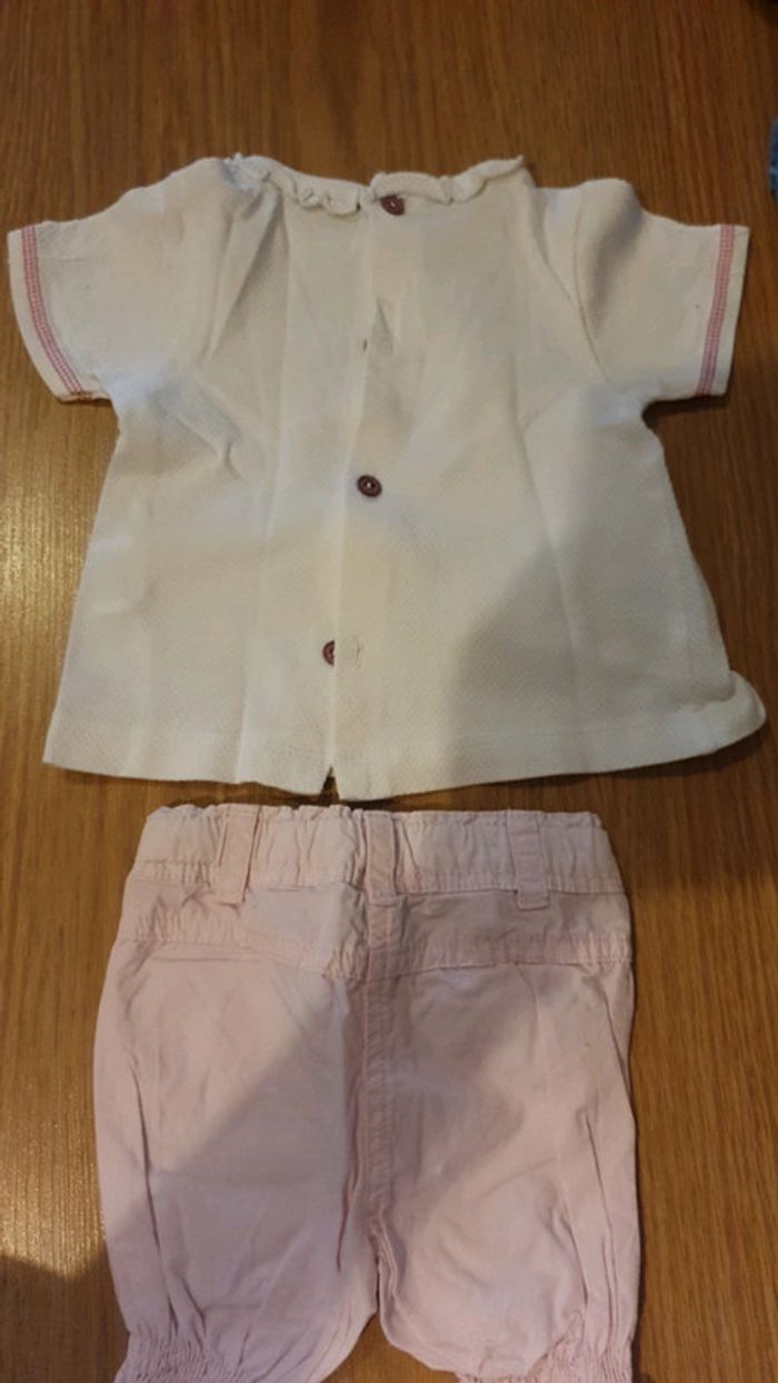 bel ensemble le short est de marque tao 3mois rose clair et le tee shirt marque pomme framboise