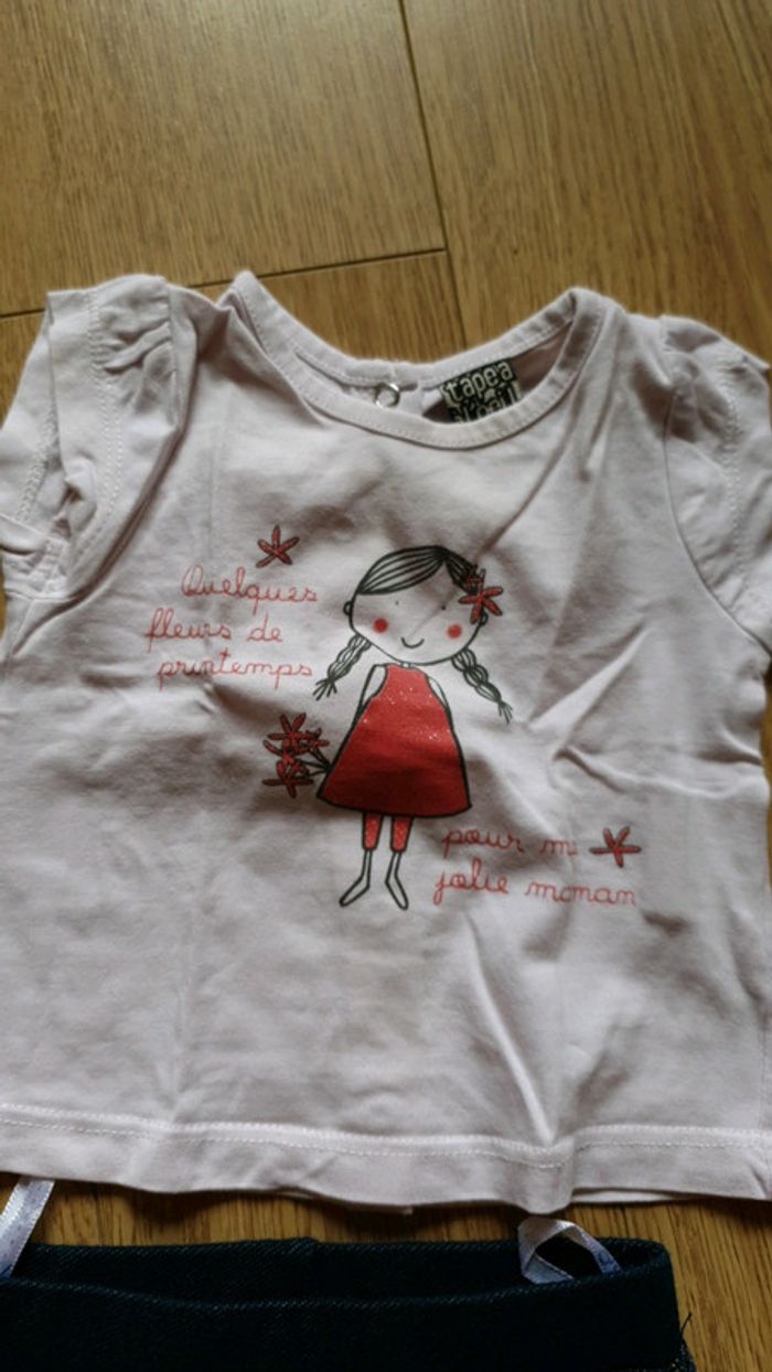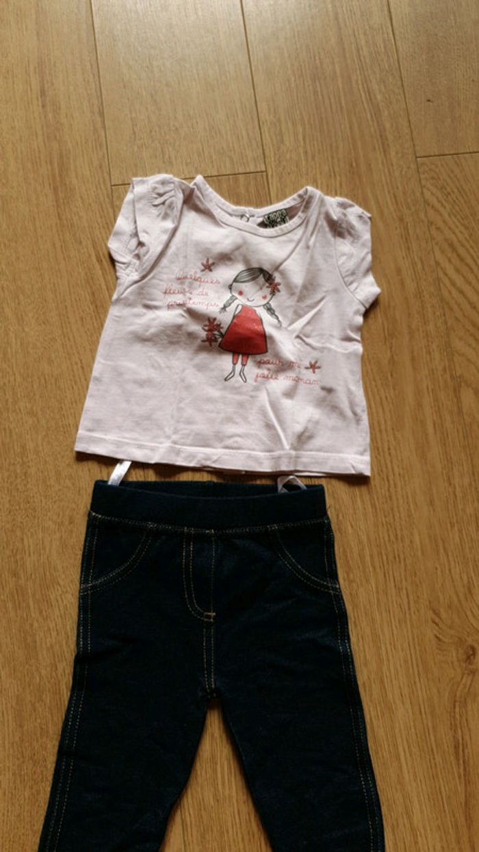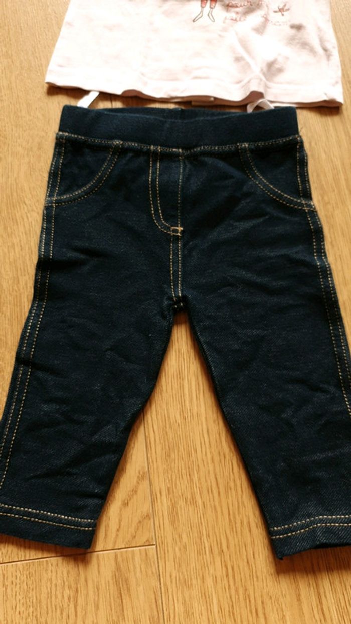 Legging effet jean très facile a mettre bleu. Tee shirt Manches courtes tape a l oeil 3 mois qui s ouvre par derrière. Possibilité de regrouper avec d autres articles pour constituer votre propre lot 20% des 5 articles.