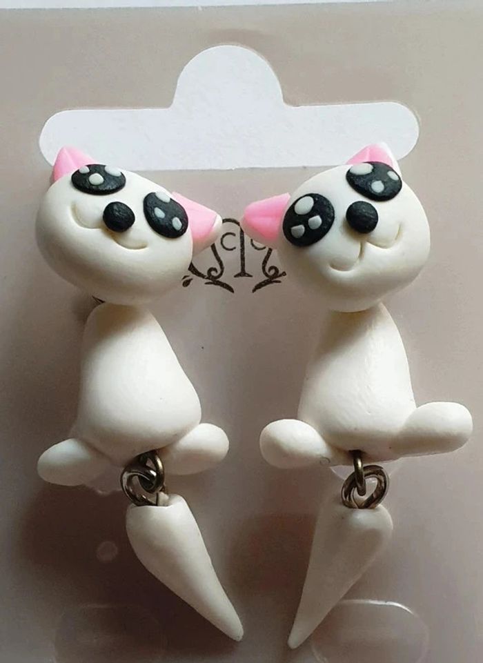 BOUCLES D'OREILLES CHAT BLANC CORPS ET TETE AMOVIBLE NEUF SANS ETIQUETTE !