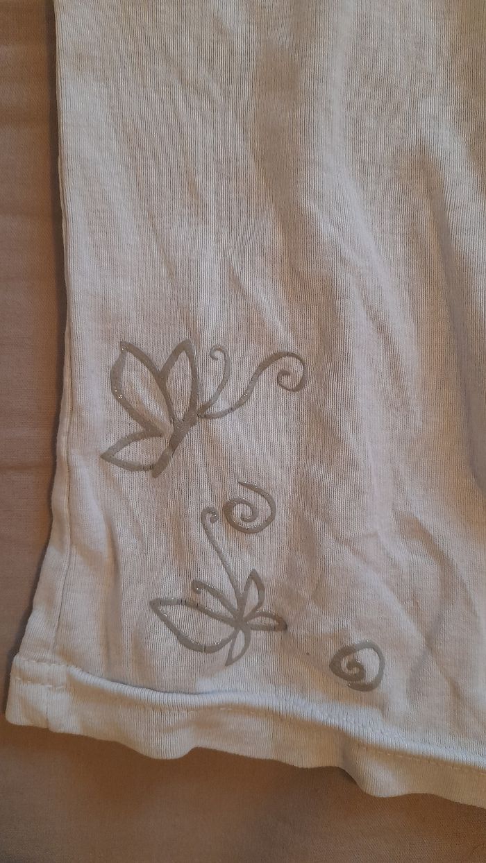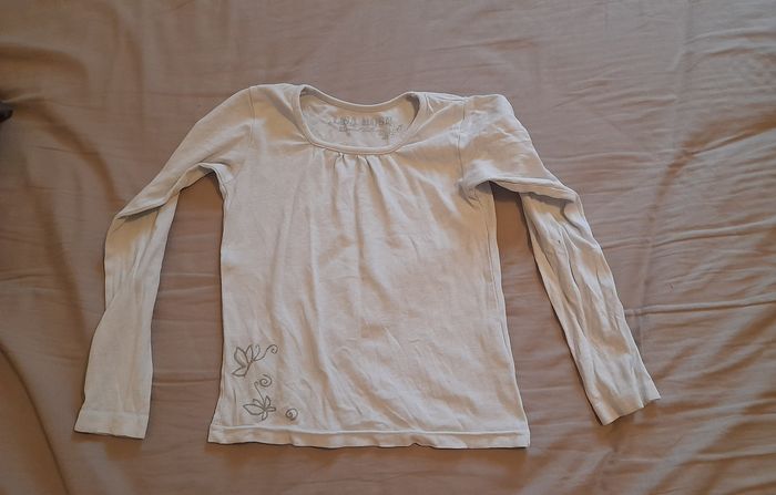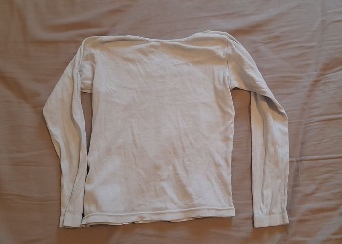 T-shirt manches longues Col rond Motif argenté à côté en bas.