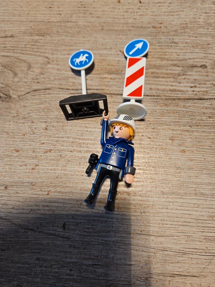 Playmobil 1 policier et 2 panneaux de signalisation, nickel - photo numéro 1