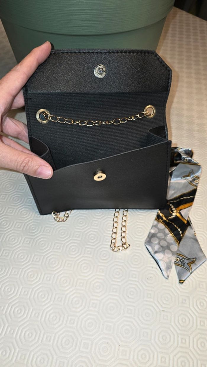 Sac à main noir chaîne avec petit foulard décoratif - photo numéro 2