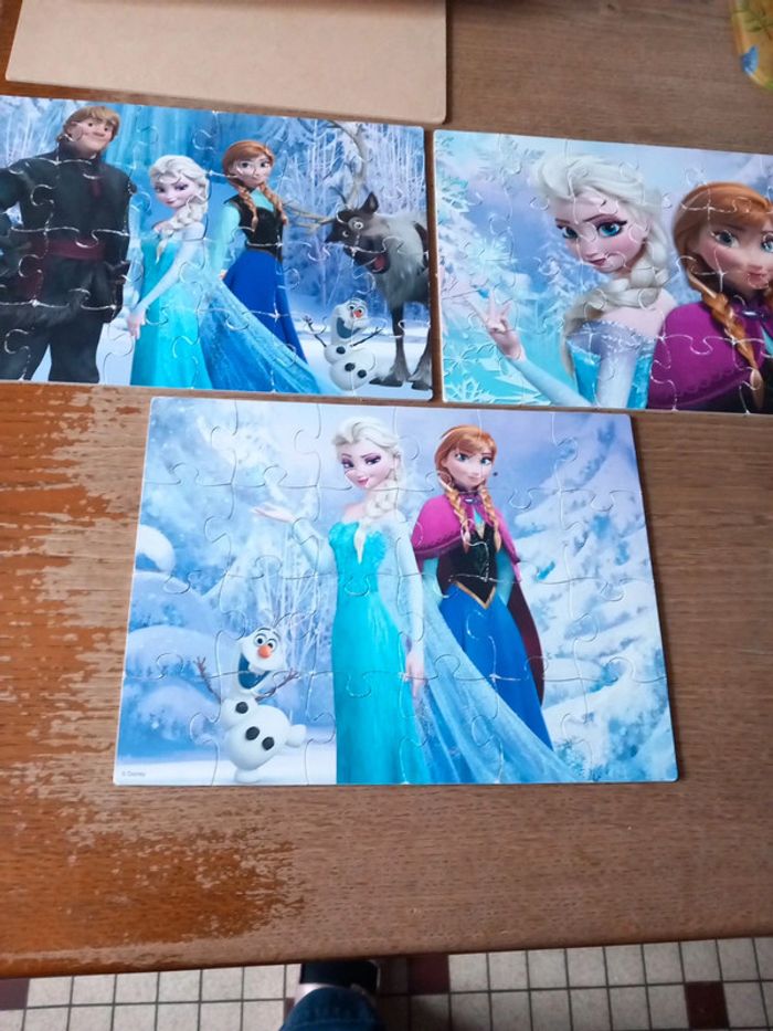 🎅😷coffret bois avec 3 puzzles Reine des neiges - photo numéro 1