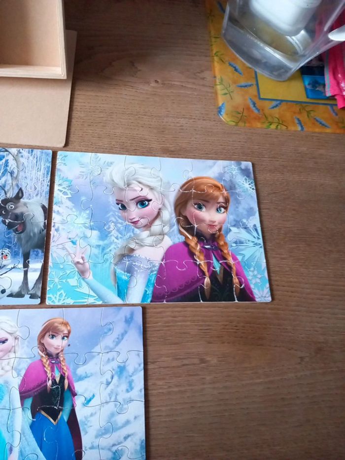 🎅😷coffret bois avec 3 puzzles Reine des neiges - photo numéro 6