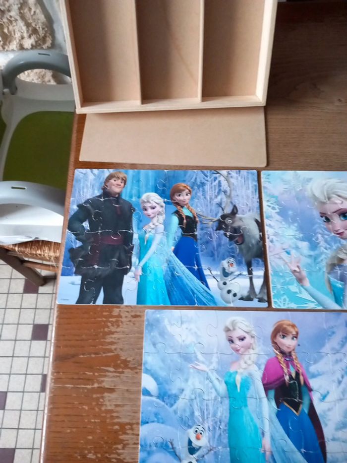 🎅😷coffret bois avec 3 puzzles Reine des neiges - photo numéro 5