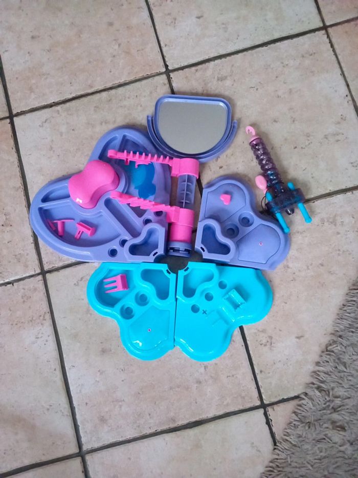 4 éléments en forme de cœurs + miroir + appareil à frisé les cheveux des poupées