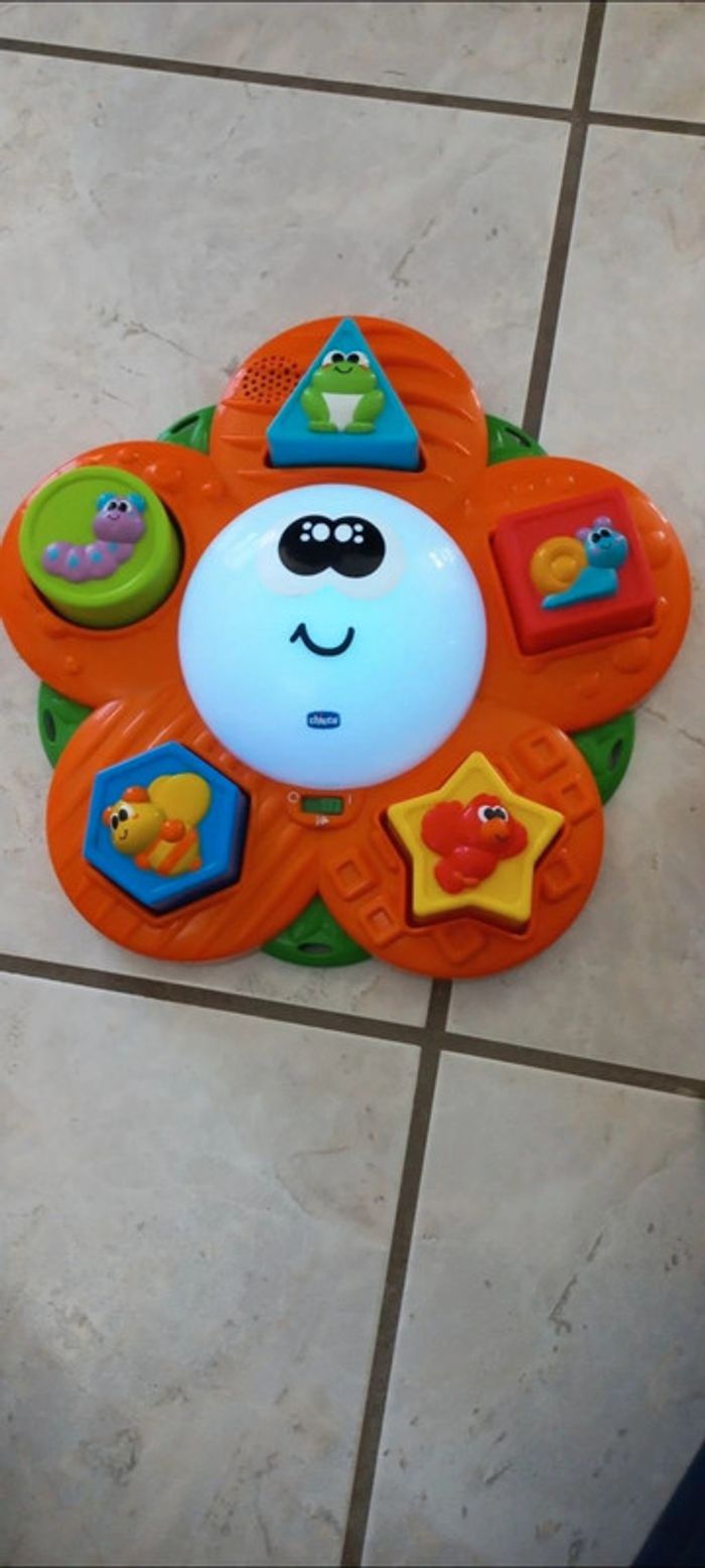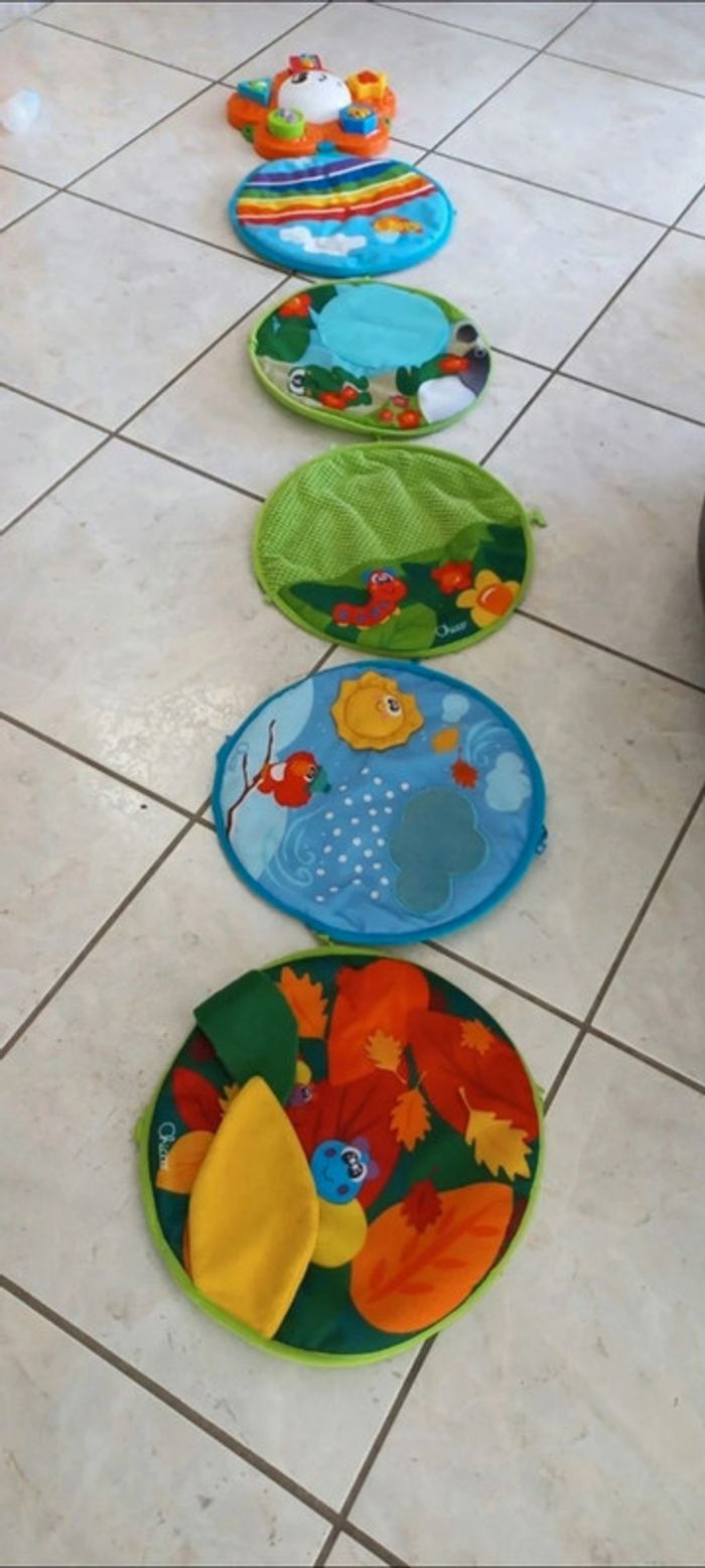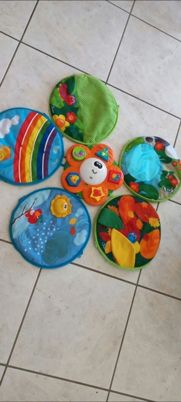 Activités d'éveil pour petits 1 base électronique qui change de couleur et fait de la musique quand l'enfant tire sur une forme (qui reste attaché) 5 disques en tissu pour chaque saison et un avec l'arc en ciel- sensorialité différente A partir de 9 mois Marque Chicco #nanadoucik_jeu Prix sur les lots je vends également des vêtements