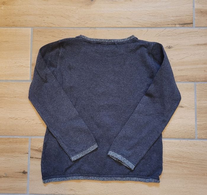 Pull en maille gris foncé avec un petit motif étoile argentée sur le devant