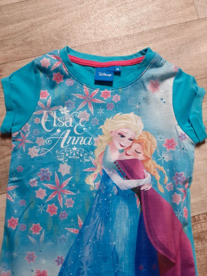 T-shirt fille manches courtes la reine des neiges 3 ans - photo numéro 1