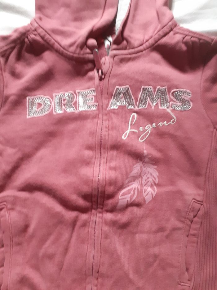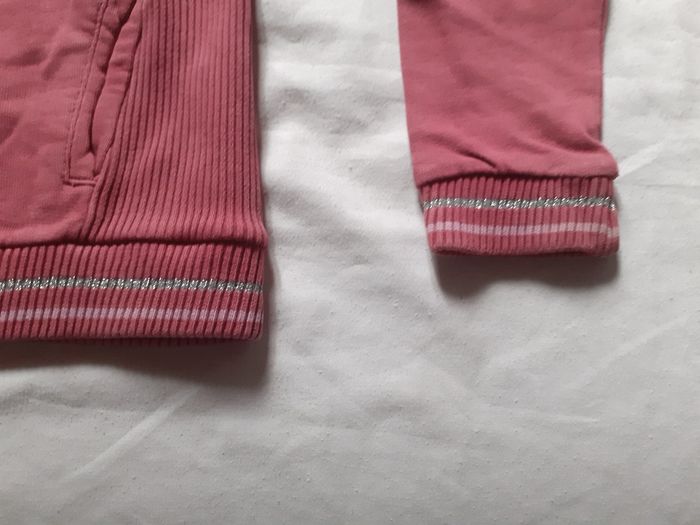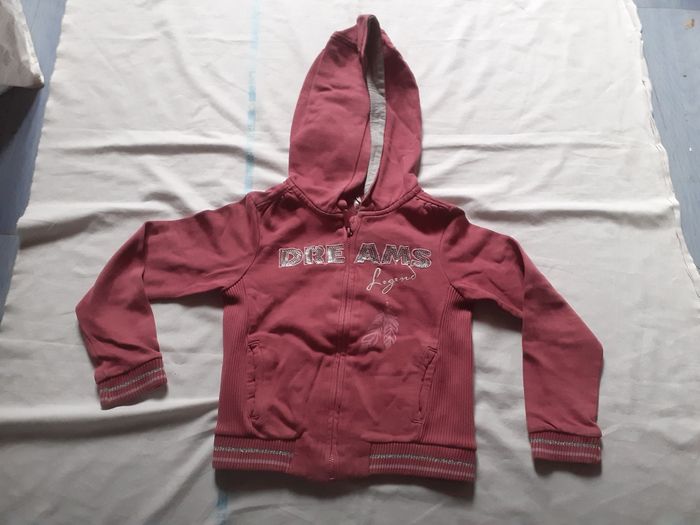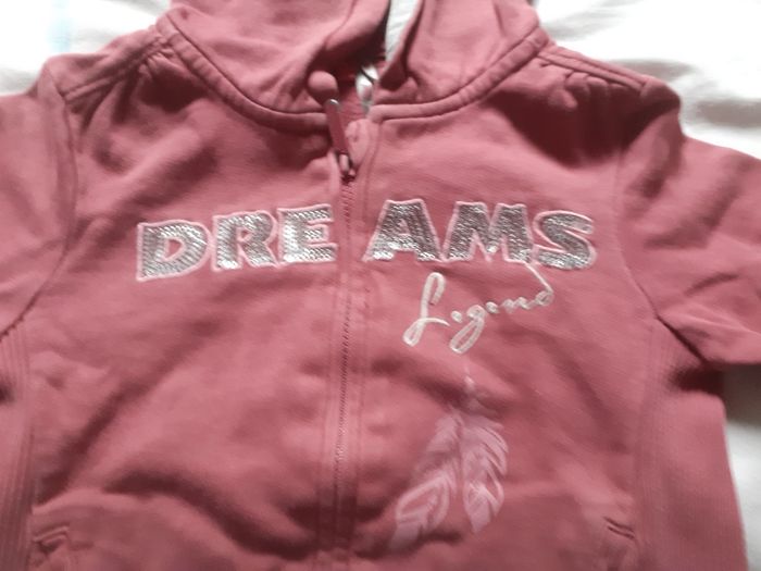 Veste jogging vieux rose à capuche motif écriture sequins argentés 5 ans