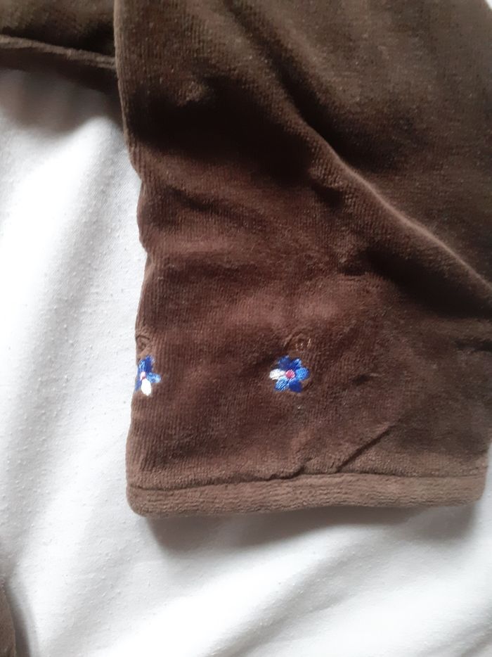Veste épaisse marron à capuche avec 2 poches et motif de 2 petites fleurs bleues aux manches - photo numéro 5