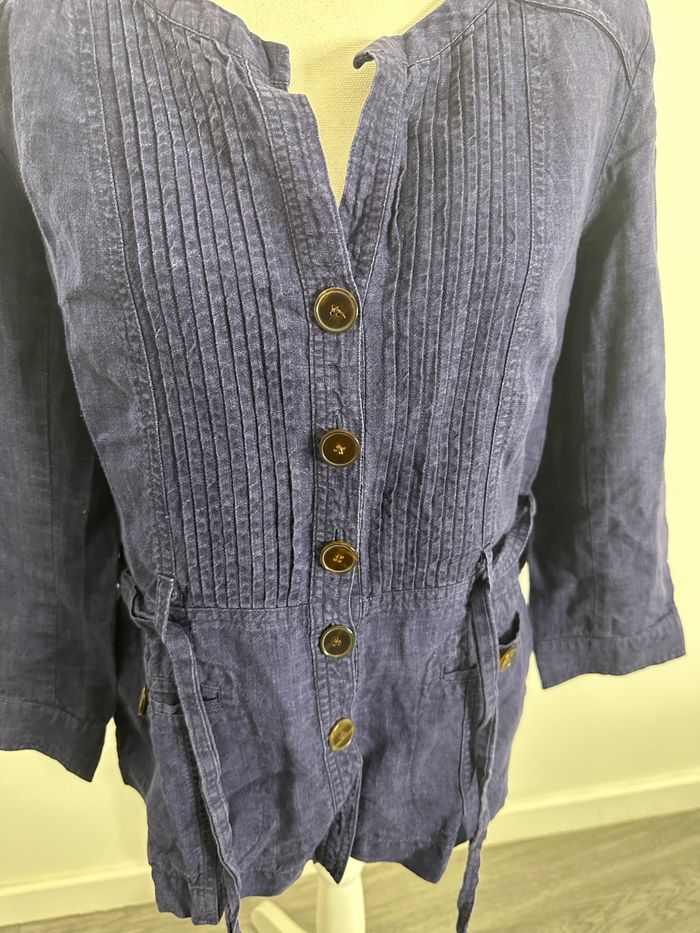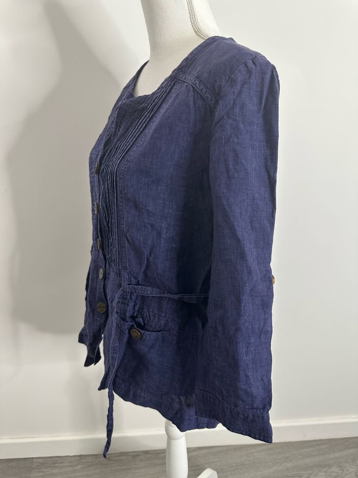 Blouse saharienne en lin bleue marine Gérard Darel T44 XXL - photo numéro 7