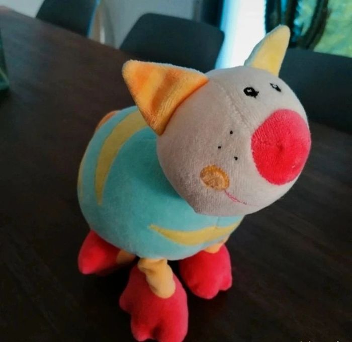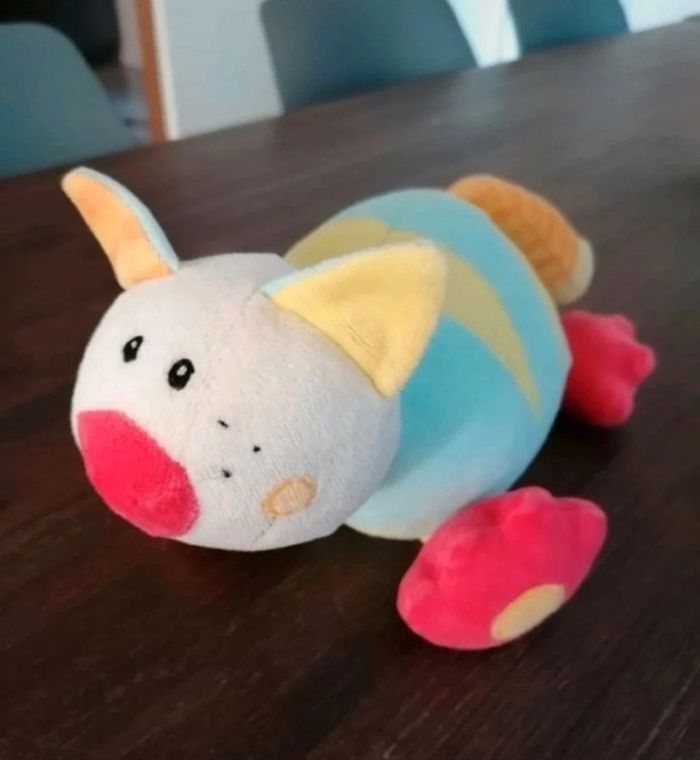 Un jolie peluche grelot Couleurs vives Babysun 30 cm environ
