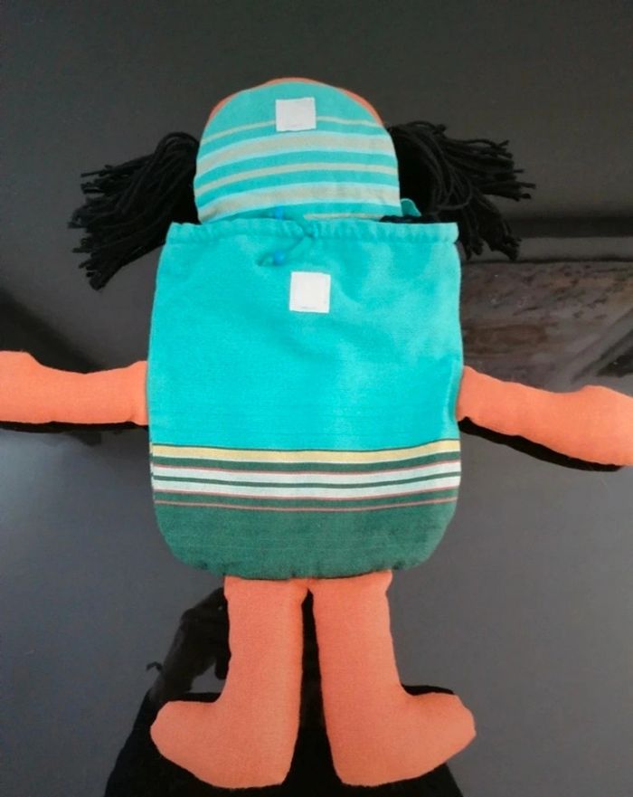 Sac à dos poupée métisse en tissu 40x20 cm. - photo numéro 1