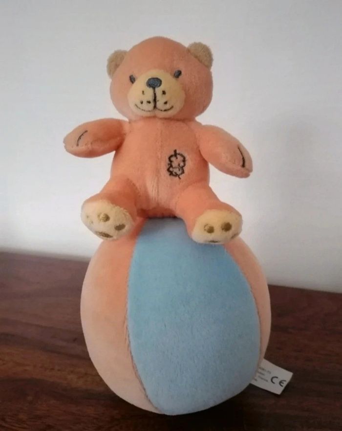Culbuto musical ourson assis sur sa balle 20 cm env - photo numéro 1