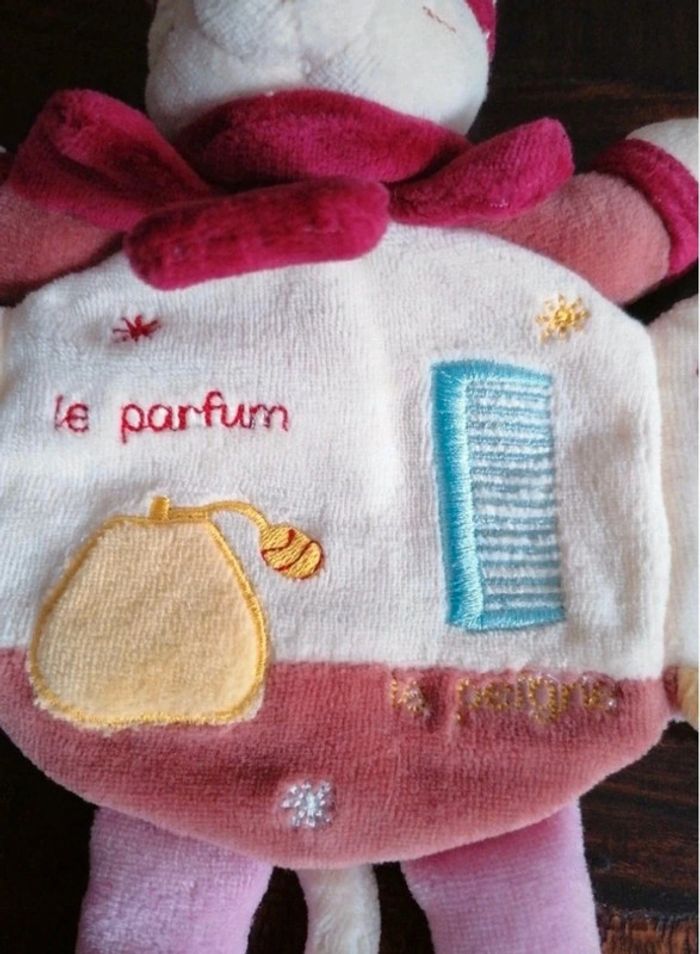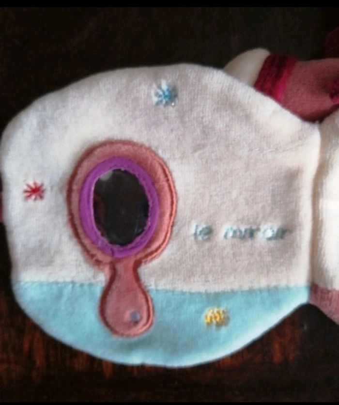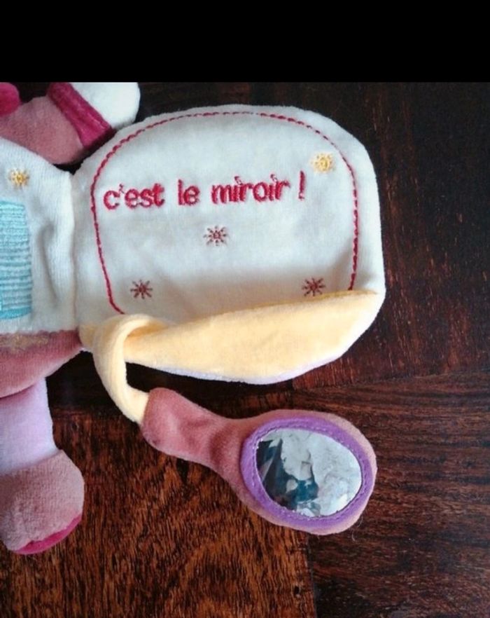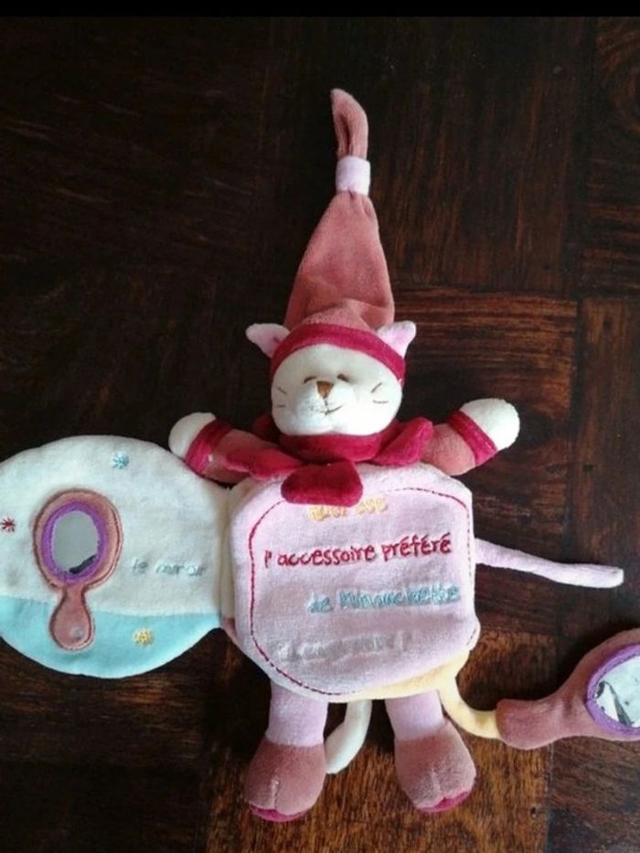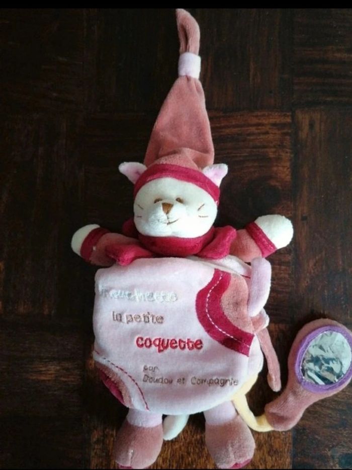 Doudou minouchette la petite coquette de la collection Les z'amigolos Livre peluche Doudou et Compagnie 20 cm env le miroir de minouchette est froissé ce qui explique ce petit prix