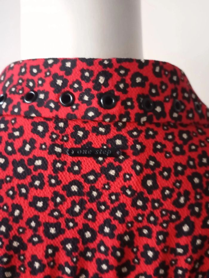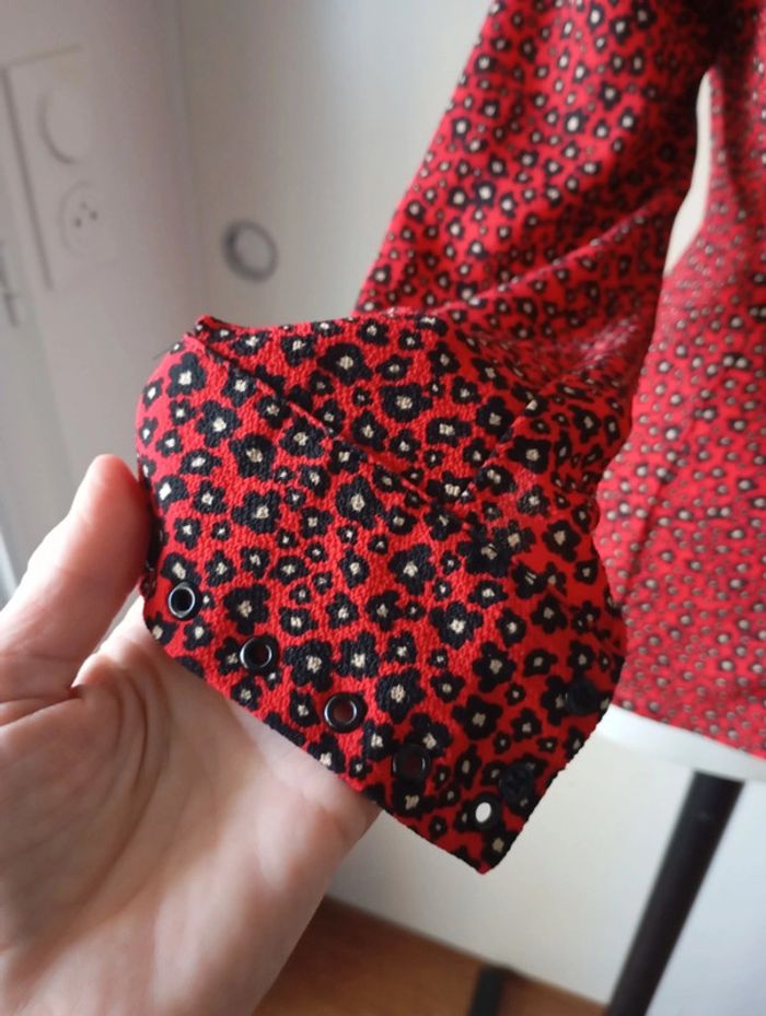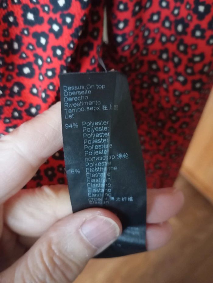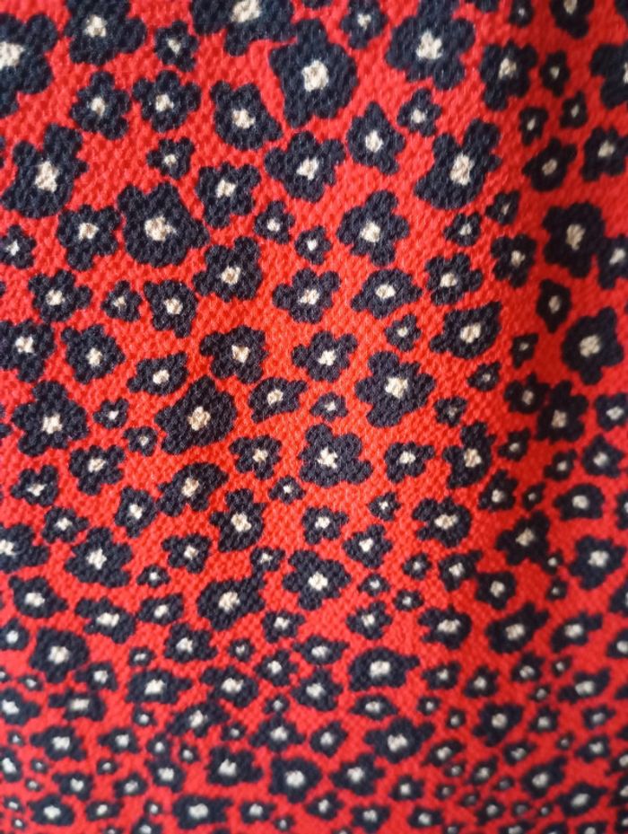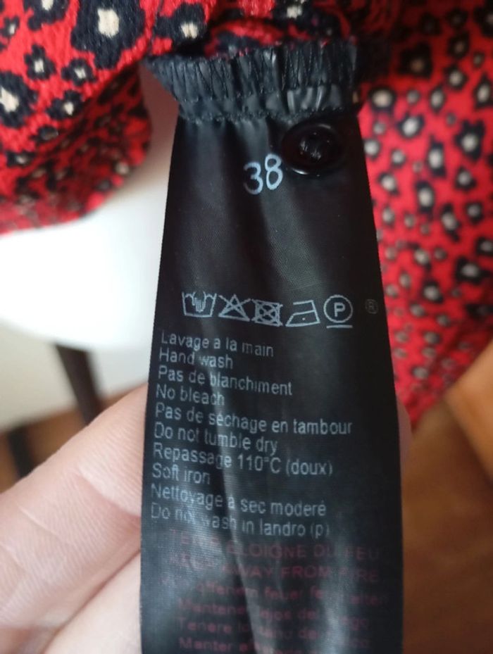 Chemise cintrée femme, taille 38, de couleur rouge noire et blanche Longueur 63 cm Épaule. 40 cm Poitrine. 49 cm Composition 94% polyester 6% elasthane