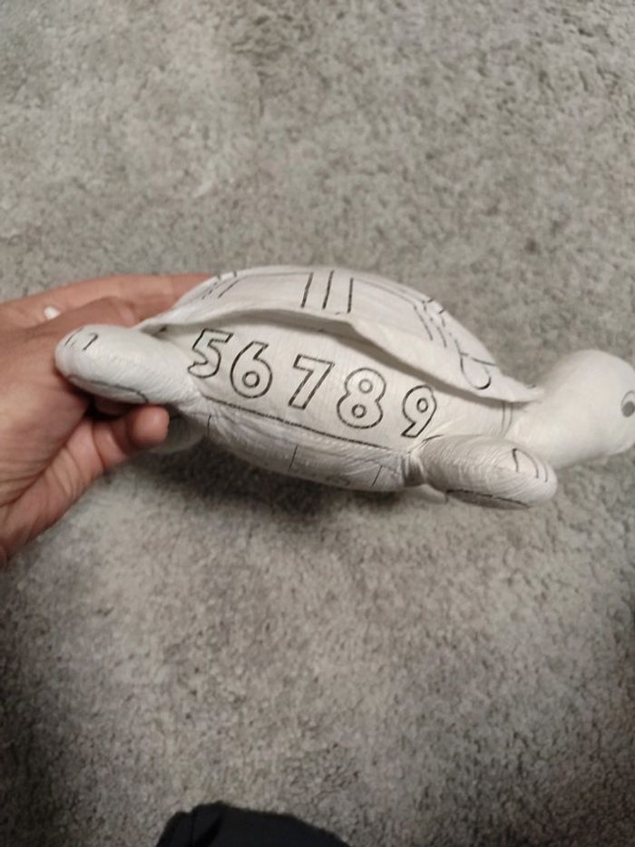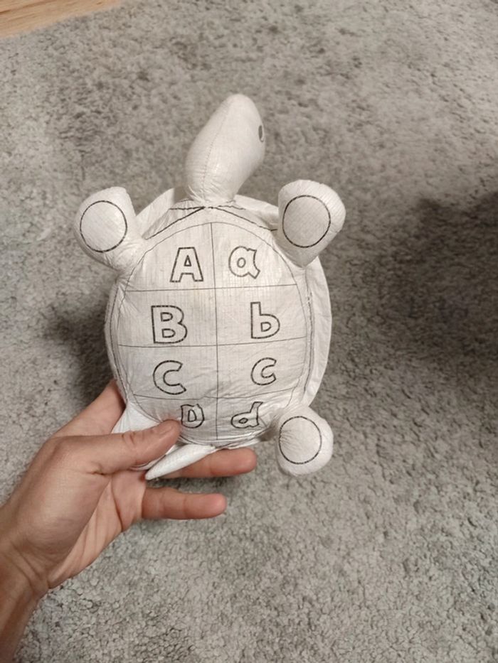 Peluche tortue a colorier et lavable pour apprendre les lettres et chiffres.