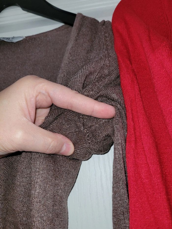 Rouge en parfait état in extenso Et le brun clair clockhouse à déjà était recousu en dessous du bras Extensible #lucadinepull