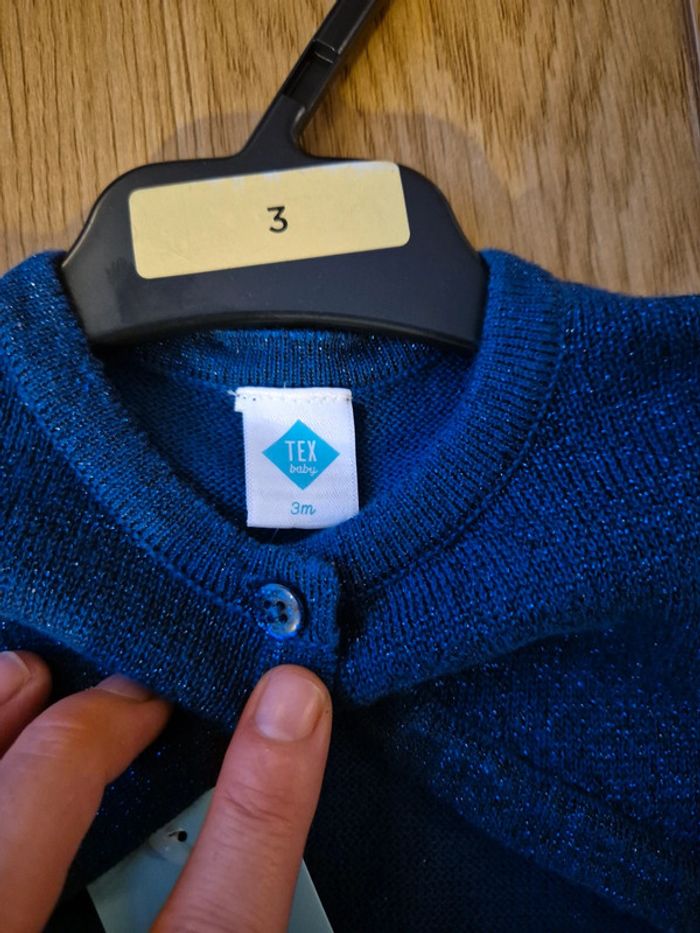 Boléro bleu pailleté neuf 3 mois tex - photo numéro 5